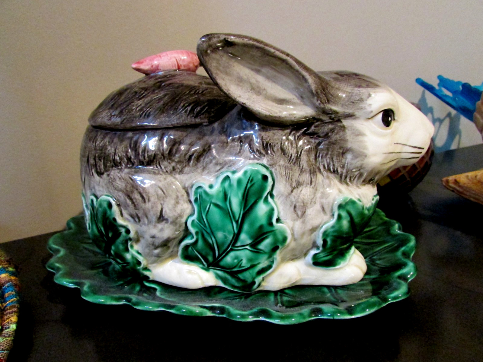 The Haldon Group 1983 Majolica Style Rabbit Soup/Gravy Tureen with Ladle & PlateThe Haldon Group 1983 Majolica Style Rabbit Soup/Gravy Tureen with Ladle & Underplate.Mint -unused conditionno issuessmoke and pet free homeGorgeousPlate: 10.25" x 7"Ladle: 7.5"Rabbit: 9.5" long, 5" wide & 5.5" at tallest point