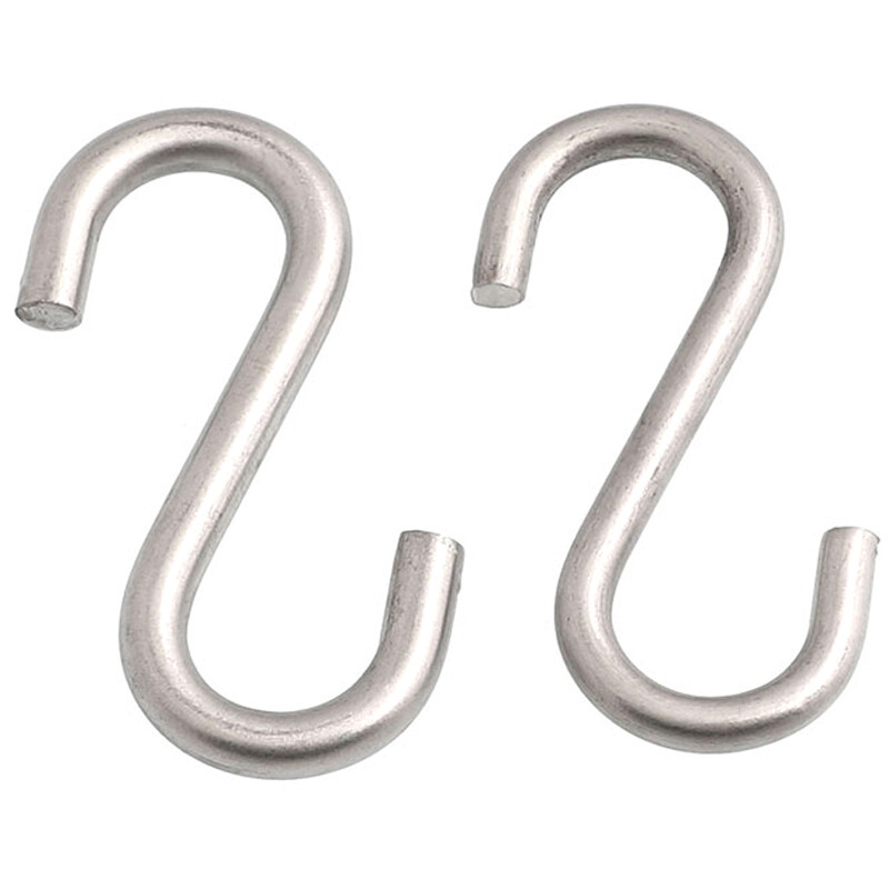 Descriptions: Model: Stainless Steel S Hooks Kitchen Meat Pan Utensil Clothes Hanger Hanging Material: 304 Stainless Steel Standard: Metric Size: M2~M10 Surface treatment: smooth treatment Features: smooth surface, no burr, 304 stainless steel, outdoor and wet environment, no rust, complete