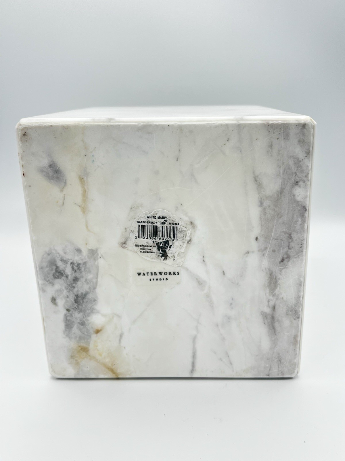 Beautiful heavy marble trash can by Waterworks Studios. Some markings and small stain please see photos