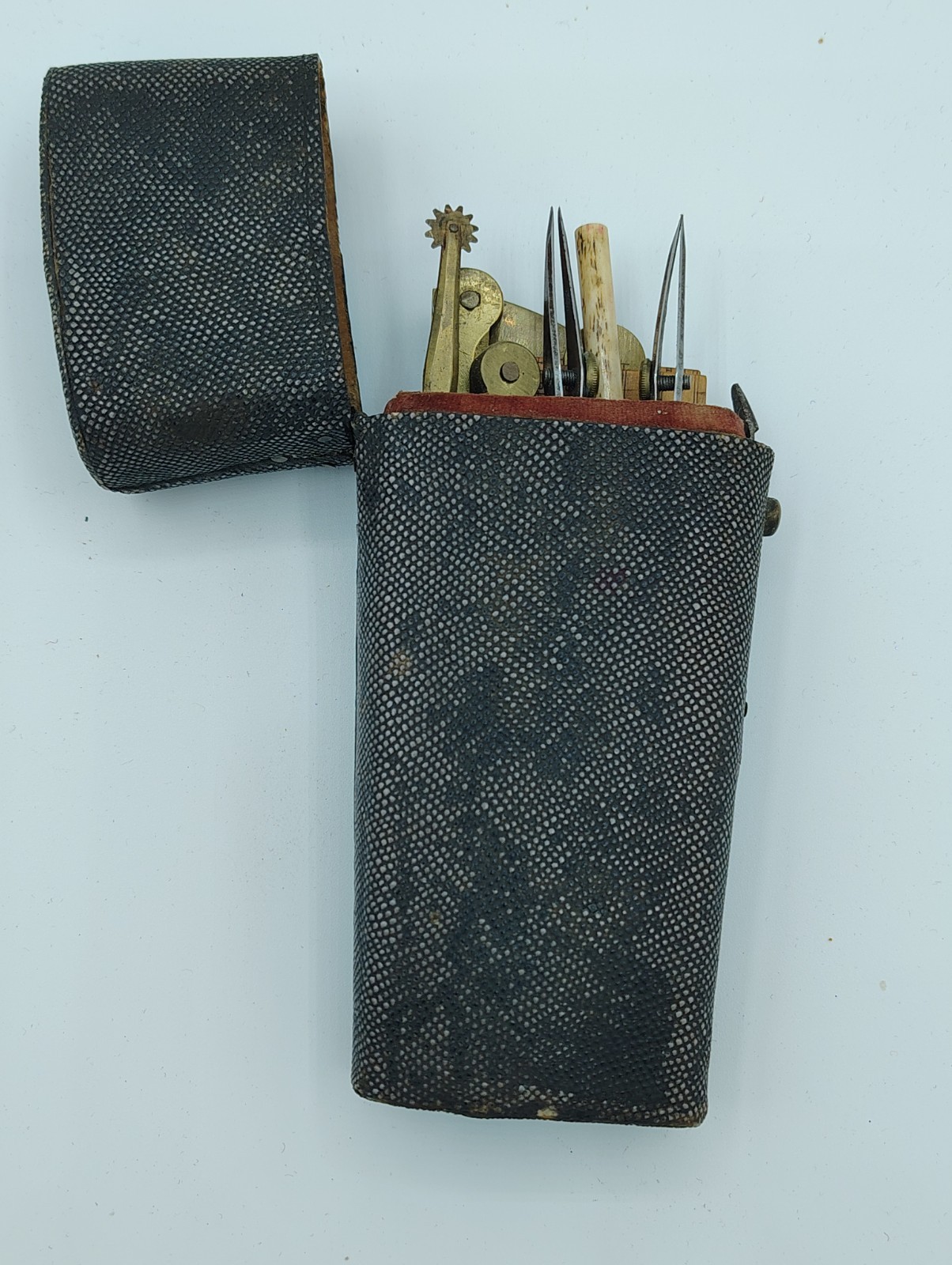 Late 1700s Sailor Cartographer map maker tools in Shagreen Shark skin case etui