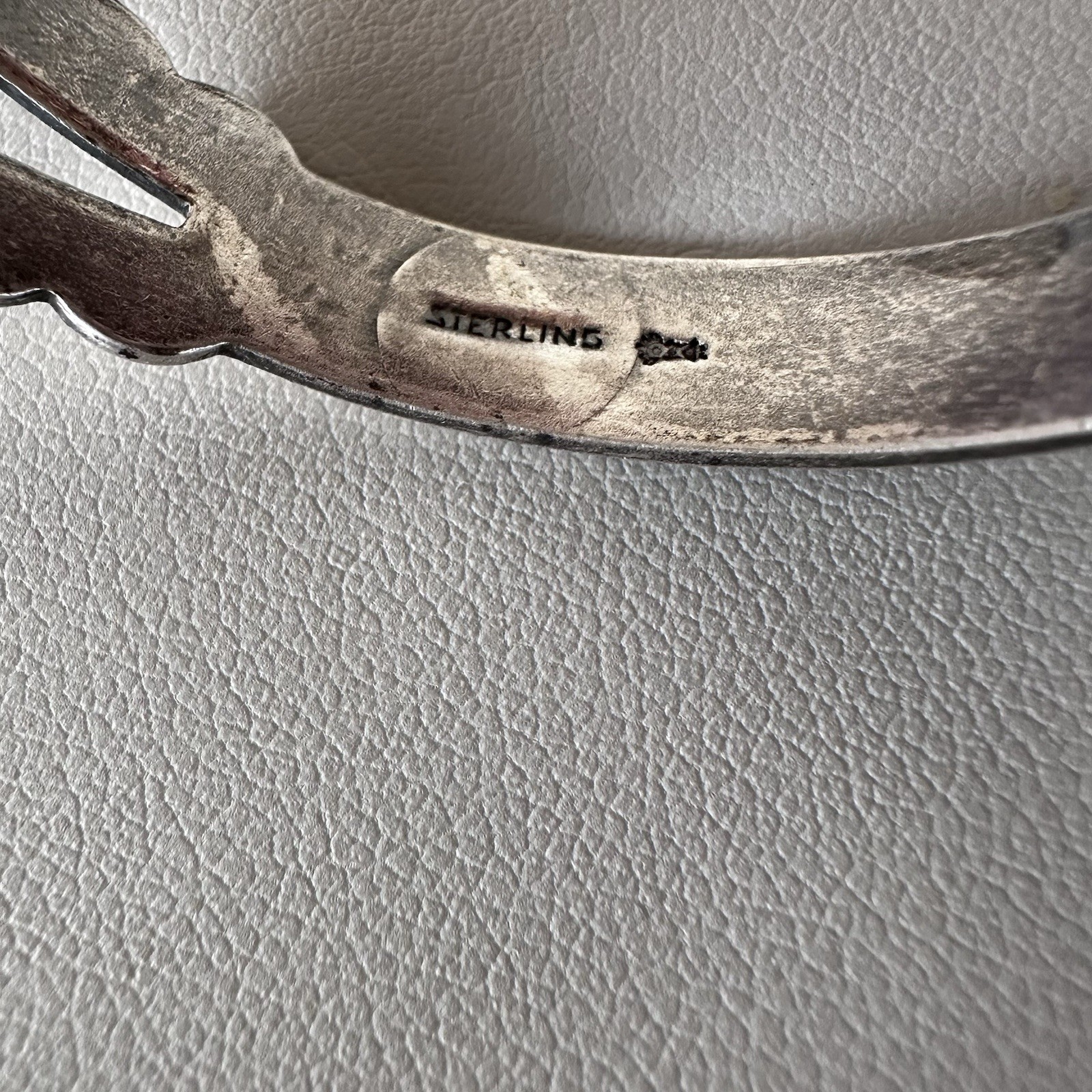 Vintage Turquoise & Sterling Silver Southwest Cuff Bracelet MAISELS tooled designs. Inner full circumference measures 6.5”, (pictured on my wrist, which is 6.5” wrist). There is some light patina/tarnish, that can be polished if buyer desires. Weight of the bracelet is 14 grams.