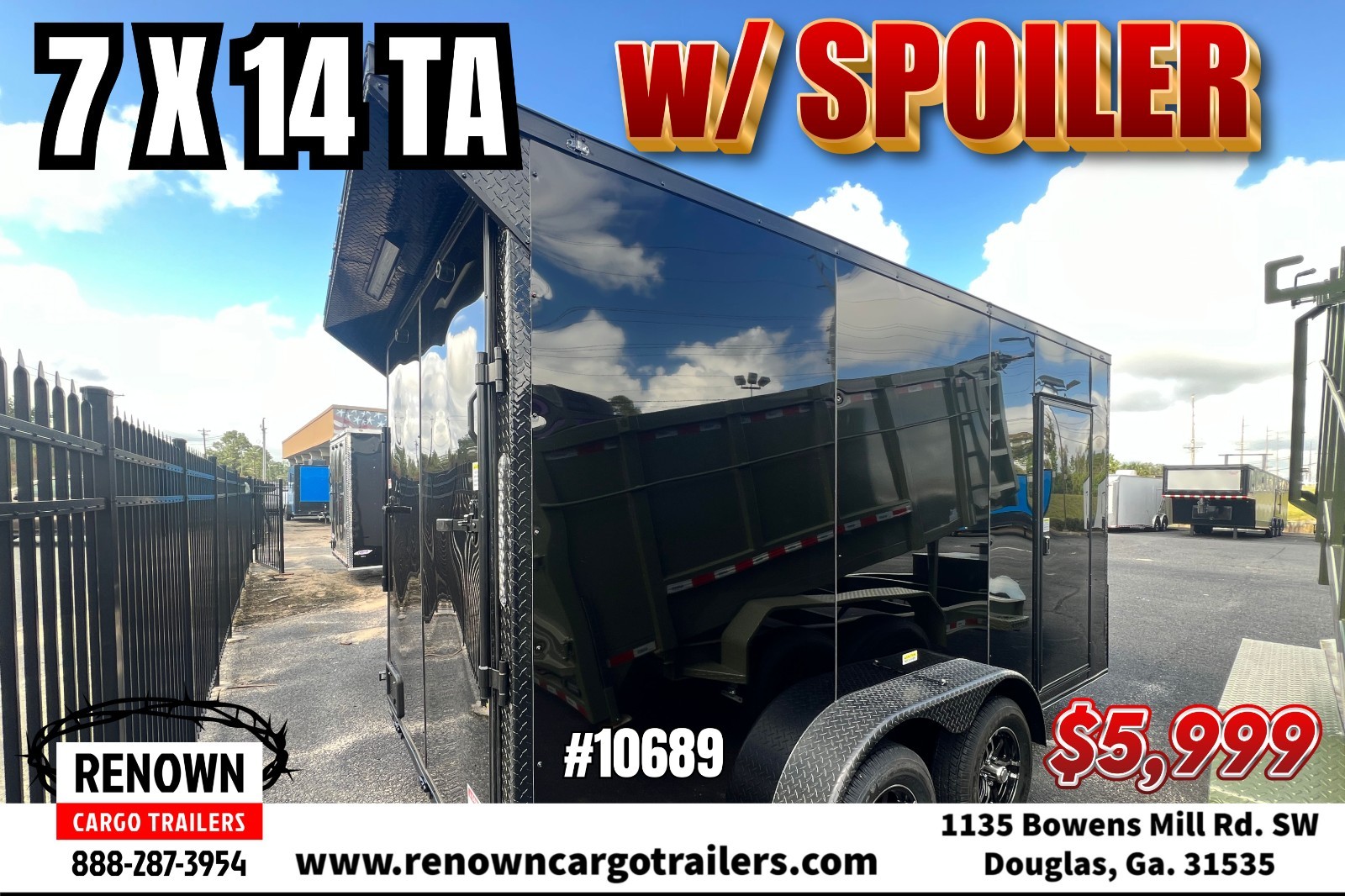 2026 7×16 Enclosed Cargo Trailer – Blackout Package, 7’ Height, Alloy Wheels 2026 7×16 Enclosed Cargo Trailer Tall Build. Full Blackout. Built to Haul. 🔥 This trailer is as sharp as it is strong. With a full blackout trim, upgraded height, LED spoiler, and polycore panels, it’s designed for pros who want to stand out. Whether you’re hauling bikes, tools, or cargo, this 7×16 tandem axle trailer delivers power, space, and a premium look — all at an unbeatable price. Available in Black Blackout or White Blackout. 🔧 Upgraded Features 7' Interior Height – Walk-in friendly Blackout Package – Sleek black trim, tongue, and hardware Polycore Panels – Strong and sharp-looking Semi‑Screwless Exterior – Smooth, clean finish Rear Spoiler with Built-in LED Strip – Visibility meets style Alloy Wheels – Premium look and ride 📦 Standard Features 7×16 Tandem Axle – 3,500 lb axles with electric brakes Rear Ramp Door with Spring Assist 36" RV‑Style Side Door with Flush Lock ¾" Premium Plywood Floor (painted underneath) ⅜" Premium Plywood Sidewalls LED Exterior Lights & LED Strip Taillights Color-Coded Exterior Screws for a cleaner look Interior LED Dome Light Galvalume Roof, 24" ATP Stone Guard Aluminum Jeep Fenders V‑Nose with ATP Stone Guard Z‑Tech Undercoating 7‑Way Round Bargman Plug E‑Z Lube Hubs Ramp Door with 16" Flap 5‑Year Factory Warranty 💰 Financing & Rent‑to‑Own Available Easy approval. Options for all credit situations. 🚚 Nationwide Delivery We deliver anywhere in the U.S. — call for a delivery quote to your door. ⚠️ Important Information Factory‑Direct Pricing: High‑volume buying allows exceptionally competitive pricing with pickup in South Georgia. Nationwide Delivery: Fast, affordable shipping across the U.S. — ask for a quote. DOT Compliant: Meets regulations for all 50 States, Canada, and Mexico. Now Offering: ✔ Rent‑to‑Own Programs (No credit check) ✔ NATM Inspected & Certified for compliance and safety 🚨 Listed on multiple platforms. Please call to verify availability before purchasing. 📞 FOR MORE INFORMATION CALL: 888‑287‑3954 Renown Cargo Trailers Most Reviewed Trailer Dealership with Over 800 Verified Reviews