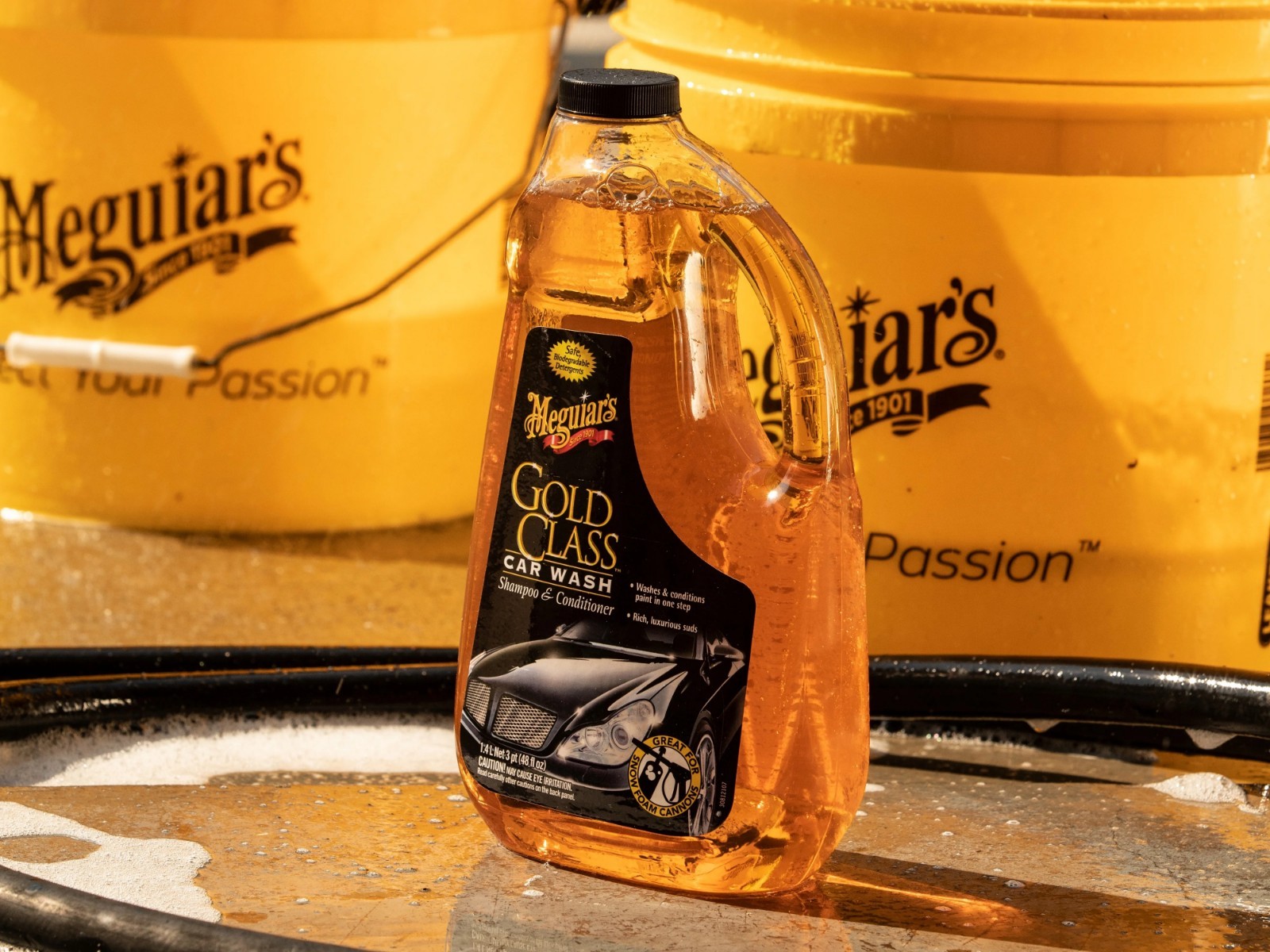 Meguiar's Gold Class Car Wash Shampoo and Conditioner is a rich and luxurious product designed to both clean and condition paint in one easy step. The premium formula gently foams away tough dirt, road grime & contaminants without compromising wax protection. Ultra-rich paint conditioners clear away debris to reveal
