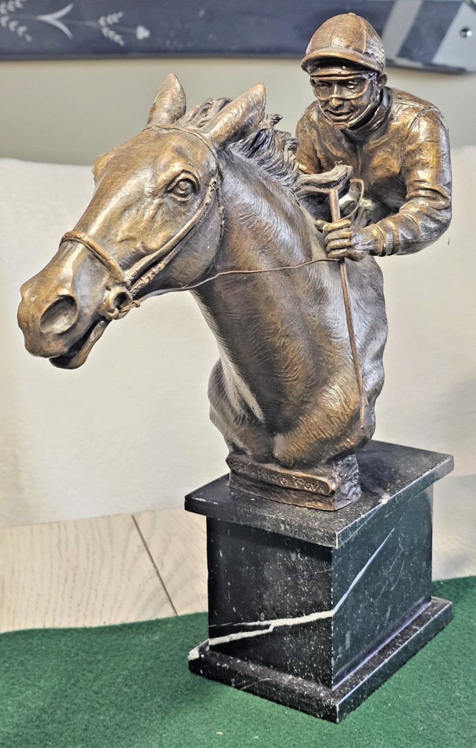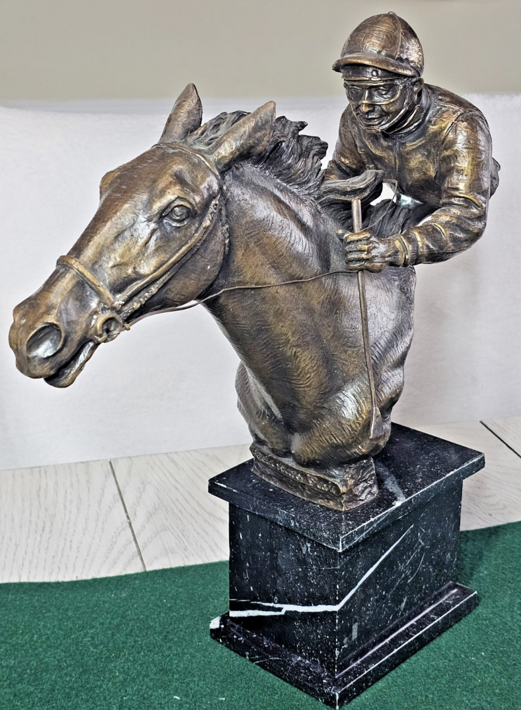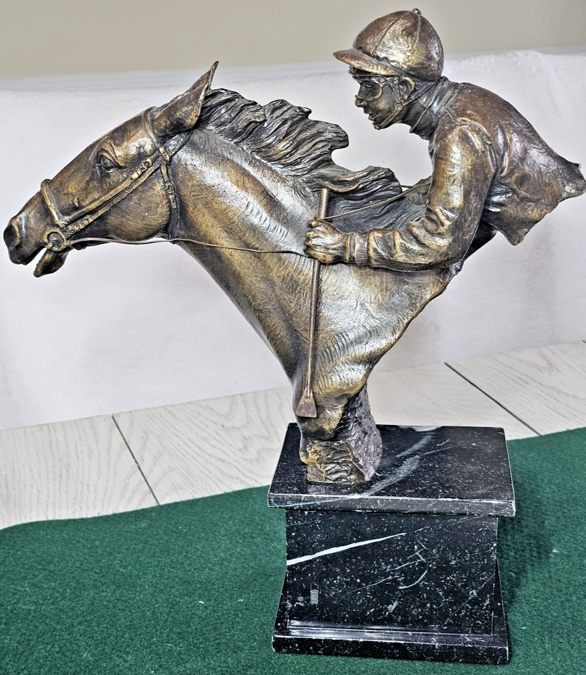 Brand New in the Box! For about 18 years, Delaware Park made beautiful limited-edition statues that were gifted only to Delaware Park employees. They stopped the practice years ago, but some of these rare vintage commissions were still in the archives. They can occasionally be found for sale online by an employee or a person the employee gave one to, but I have never seen them brand new in the box! I was able to acquire a few of the remaining pieces directly from the archives of Delaware Park brand new in the box. The white box is stamped on the front with "Delaware Park" in red and Thoroughbred Racing and Slots" in green! These are heavy pieces, being made of bronze and marble. This one measures approx. 15 inches tall and 12.5 inches wide.These are highly sought after collectors pieces and their status in the boxes makes them a super rare find! These make amazing conversations pieces for your home or office! At the listed price these are a steal and due to their limited production and being brand new in the box from Delaware Park, they are sure to continue to increase in value! Let this exquisite piece adorn your home or office today! Please ask all questions prior to purchase.