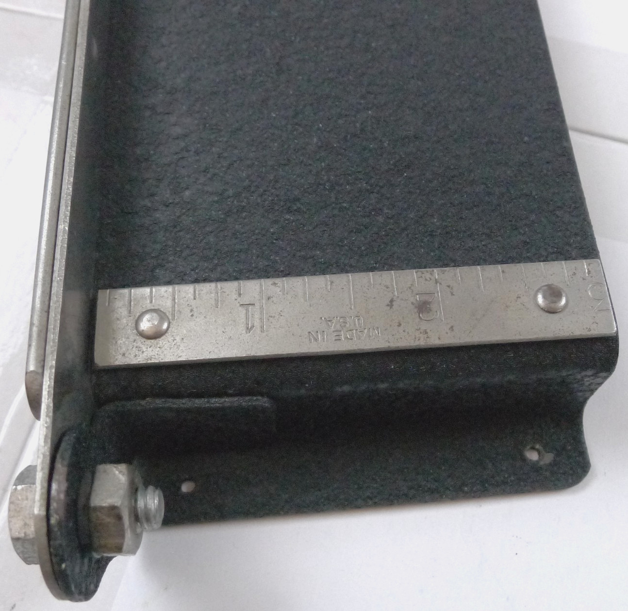 Here we have a VINTAGE "Mini Paper Cutter Guillotine (3") All Metal with Wooden Handle VINTAGE - Made in USA". ID . This is approximately 3 1/4" wide and 11" to the end of the wooden handle.Please review ALL the photos as they will attest to the items actual physical condition - . Comes with everything you see in the photos. Does not come with anything not in the photo. Actual items in photos. A Wonderful Item at a great price. Please visit Our Ebay store at the above link for even more great Collectibles. Please let Us know if you have any questions, and Thank You for your continued Interest, Support and Business.