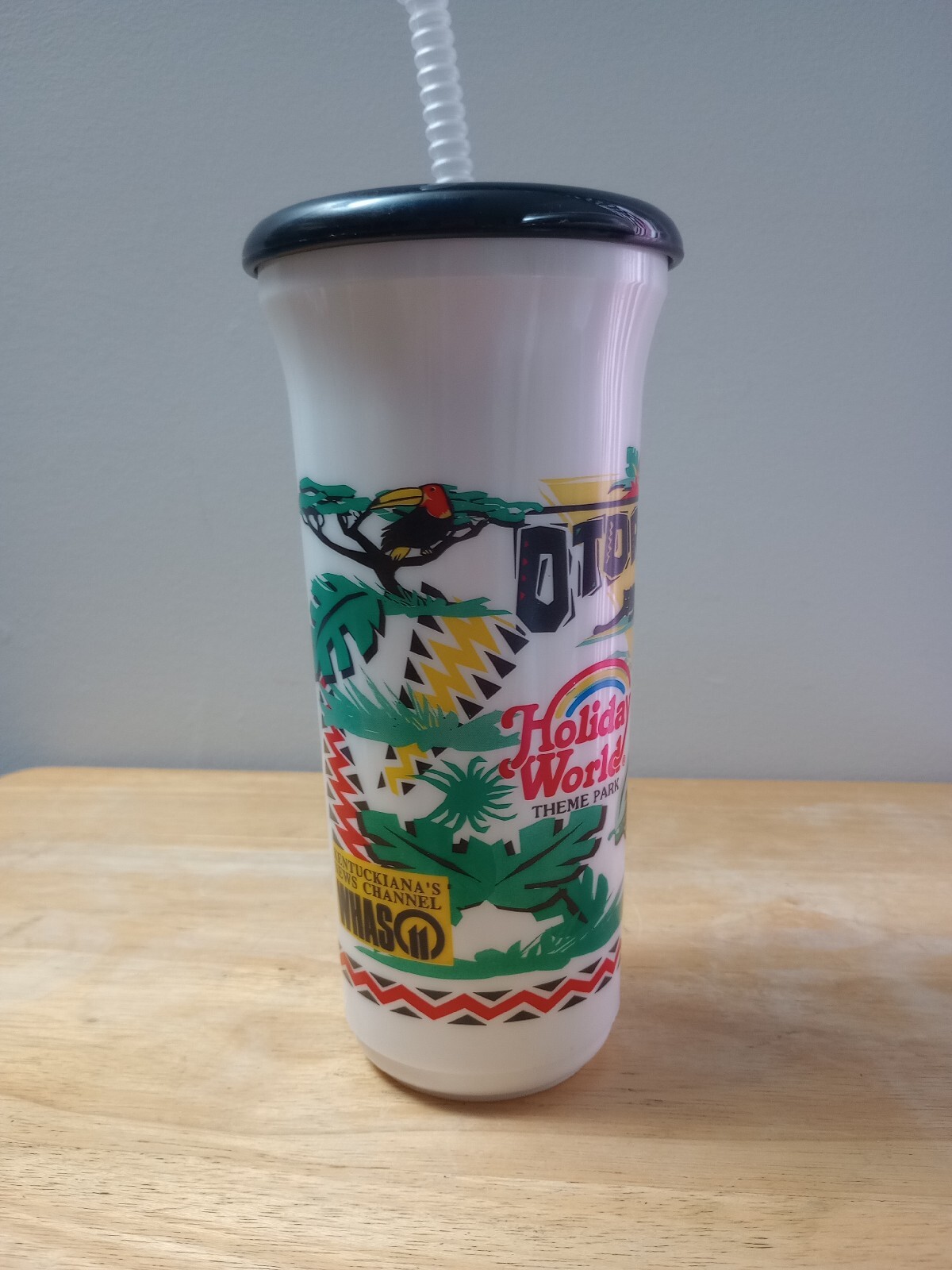 Holiday World and Splashin' Safari cup, original. Vintage. Top part of the black lid has a couple scratches in it, but other than that the cup is in terrific shape.