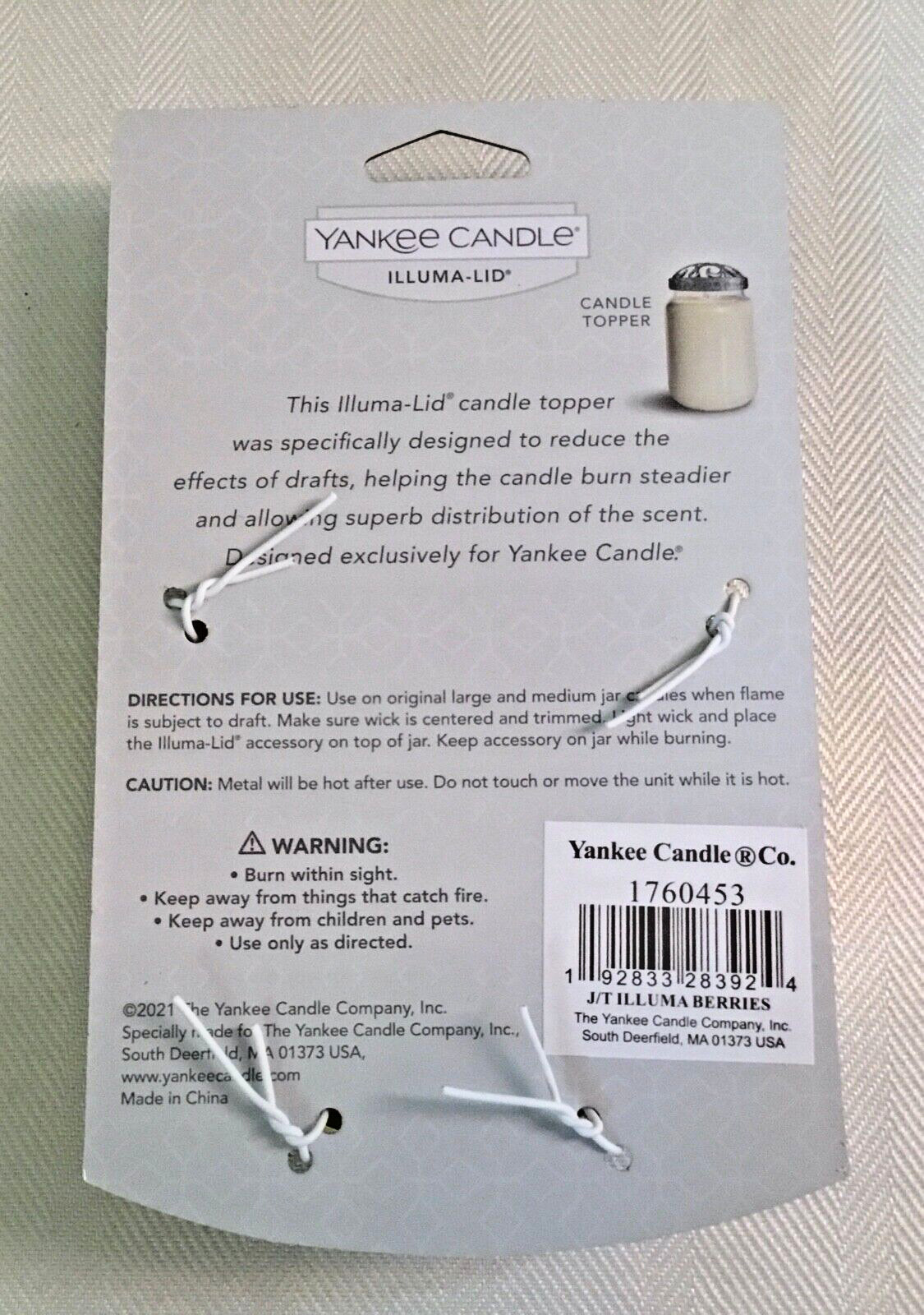 This Yankee Candle Illuma-Lid topper in the “Winter Berries” design is a candle accessory made to sit on top of compatible jar candles for a finished look. Condition is new (NWT). Free shipping is included. Check the listing for details on exact compatibility, measurements, materials, and any original packaging included. Ideal for refreshing your candle setup or gifting with a coordinating candle, this topper is listed in Home & Garden and is ready to ship.