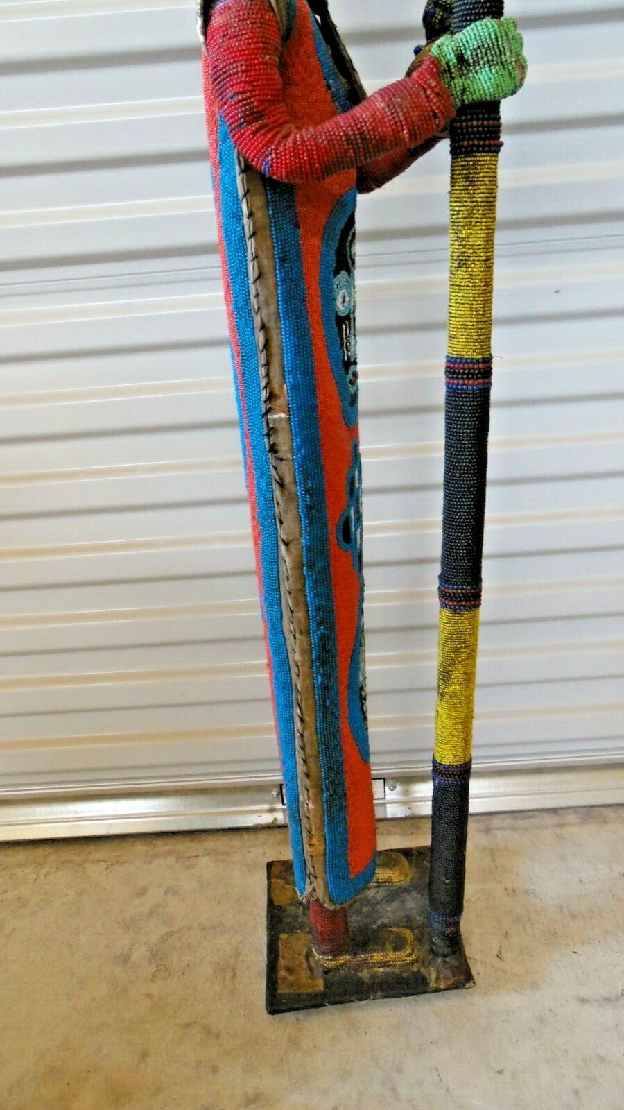 This listing features a 4 ft beaded Yoruba Sango figure statue sculpture from Nigeria, offered in the Antiques category. The piece shows wear from age and from being in storage for over 30 years, and it is described as very dusty; review the listing for full condition notes. Free shipping is included. Check the listing for details on materials, construction, and any additional measurements or provenance provided by the seller.