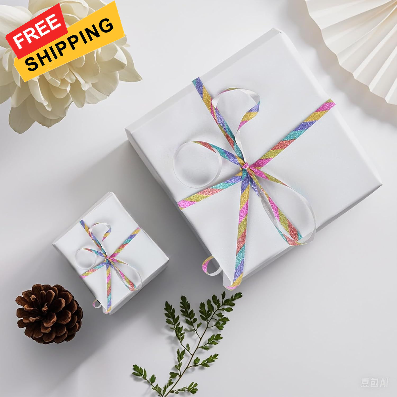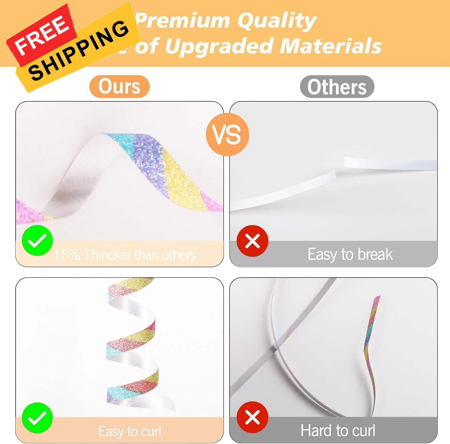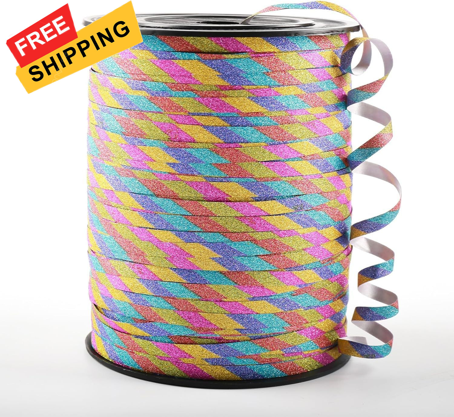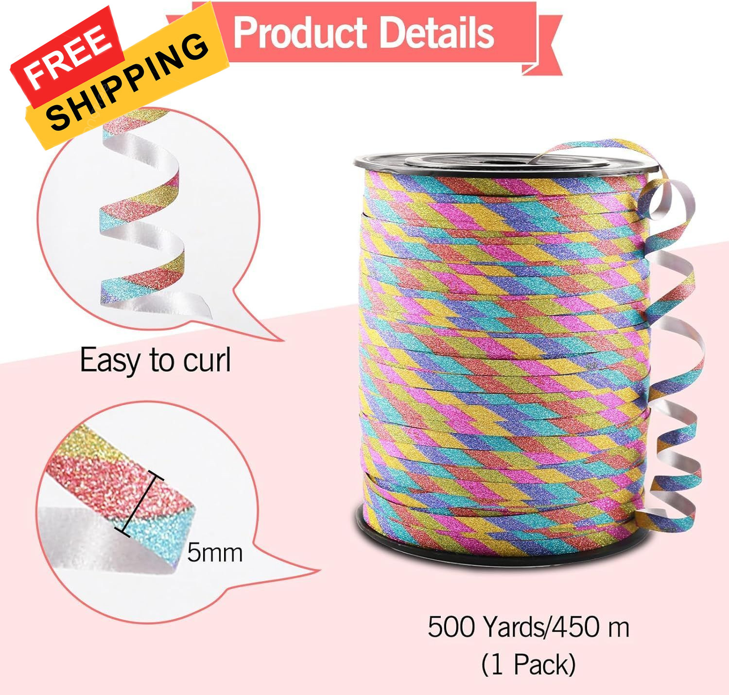 500 Yard Curling Ribbon, Rainbow Glitter Curly Ribbons for