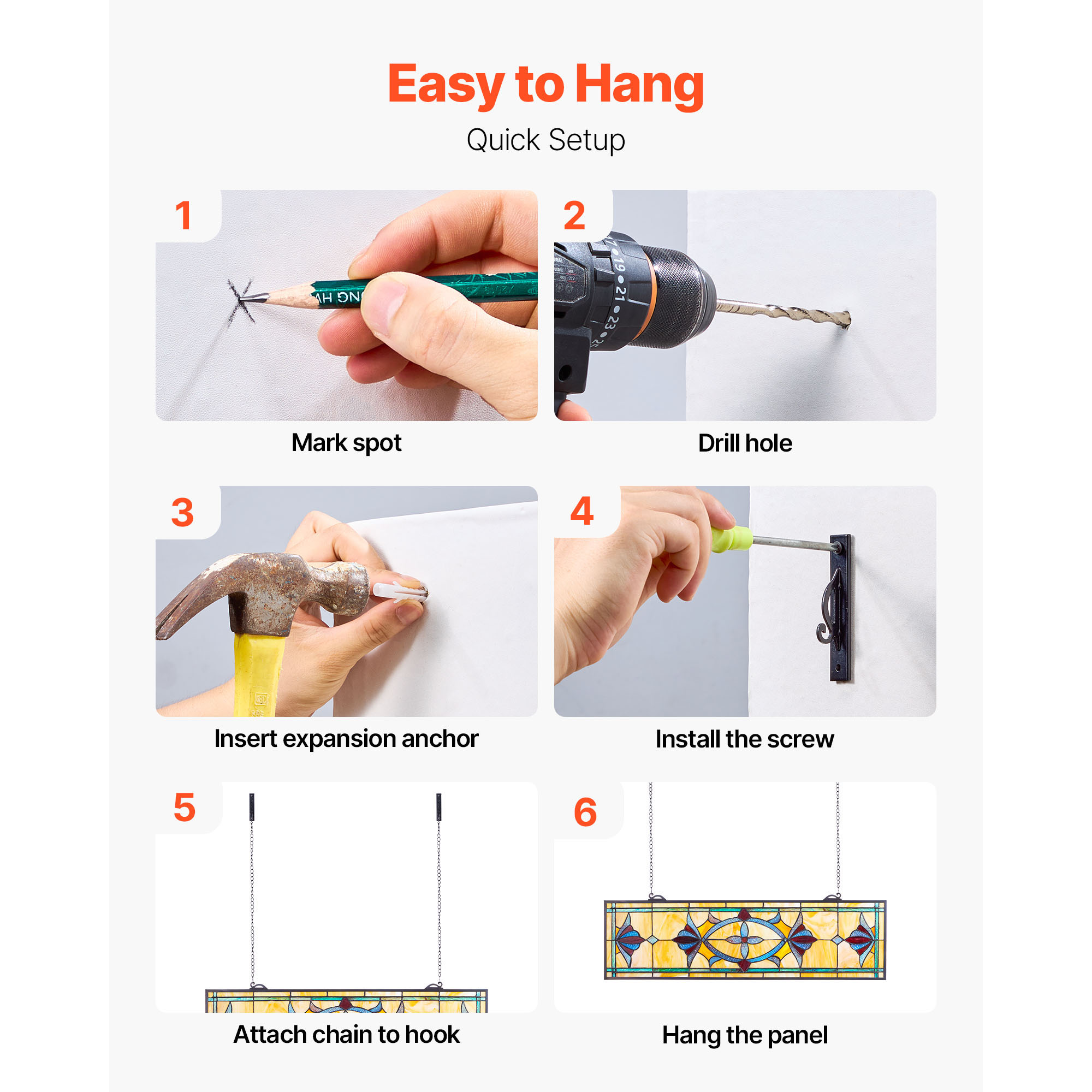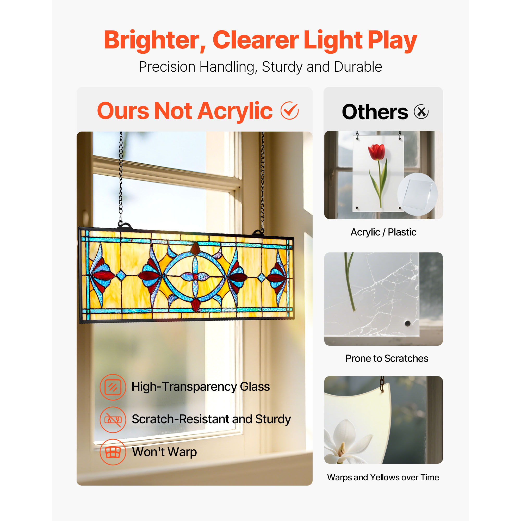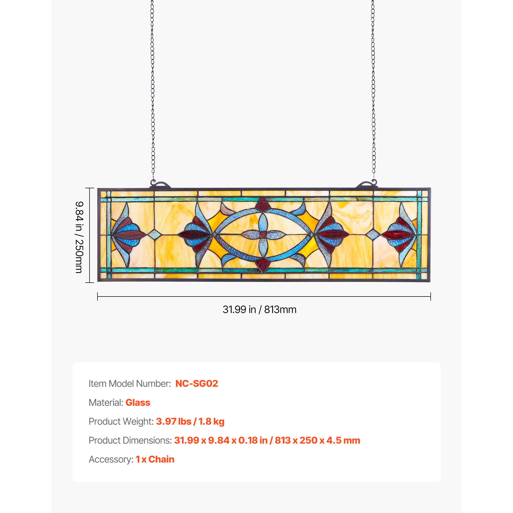 color reflections. It maintains its form and transparency over time. Effortless Installation: This stained glass panel includes a sturdy iron chain and hooks already attached, eliminating the need for additional hardware. It is simple to mount on any wall surface. Multi-Purpose Design: This stained glass window hanging panel is perfect for enhancing the ambiance of living rooms, dining spaces, cafés, or places of worship. It brings a cozy, artistic touch and instantly upgrades the overall décor. SHIPPING Please be aware that PO Box cannot receive items,please DO NOT fill in the PO Box address. DELIVERY DAYS: 3-7 BUSINESS DAYS 3 BUSINESS DAYS SHIPPING OUT SHIP FROM CA & TX & NJ & GA & NC &OR WAREHOUSE California Warehouse: City of Industry, CA Texas Warehouse: Houston, TX New Jersey Warehouse: Perth Amboy, NJ New York State Warehouse: Perth Amboy, NJ Georgia Warehouse: Austell,GA North Carolina Warehouse: Grove NC Oregon Warehouse: AIRPORT WAY Portland,OR PAYMENT We accept PayPal payment,PayPal Credit,Credit card or debit card and so on. Payment should be completed within 4 (Four) days of auction closing. Or unpaid dispute will be filed for closing auction. We will leave a positive feedback immediately after payment is received. We appreciate a positive feedback as much as you do. If for some reason there is any issue with the purchase, please contact us prior to leaving feedback, we will be glad to work together and provide a satisfying solution. RETURNS All of our items are backed with a 30-day return policy. We ensure all our items are new and in excellent condition prior to shipping. In case you receive the item that is not to the standards above, please contact us via e-Bay messages. All returns must be in new original condition as received and should be shipped with delivery confirmation Please note that all returns must be pre-approved by us. Unauthorized returns will not be accepted. If you need to return, please check twice to confirm the item not work and contact our customer service representative, let us know the detailed problem and send us some pictures for confirmation. We ONLY accept returns with original package. Please make sure that item has NO man-made sabotage. Used items will not be accepted for return. CONTACT Email Customer Support: 9:00am-2:00am PST Sunday-Friday All emails will be responded to within 12-24 hours WARRANTY This item comes with 12 months Warranty from the date of customers purchased it. Special circumstances will be listed clearly in the listing. If your item has been damaged in transit or become faulty in warranty period, please email us with pictures or video to show the problem. Please do check everything carefully after you received the parcel, any the damage except DOA (Dead-On-Arrival) would not be covered if it's your fault. Replacement products are provided with the same warranty as the returned products.