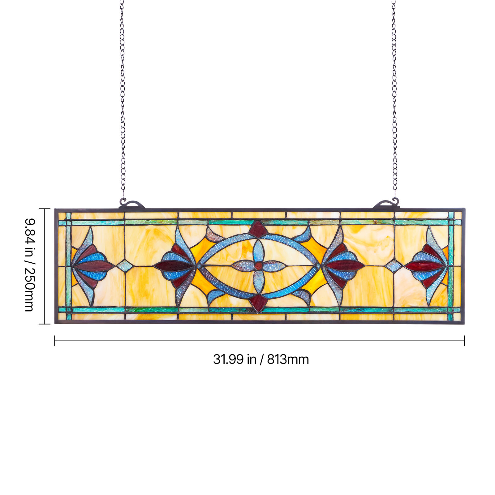 Uimoso Tiffany-Inspired Stained Glass Hanging Panel with Chain, New