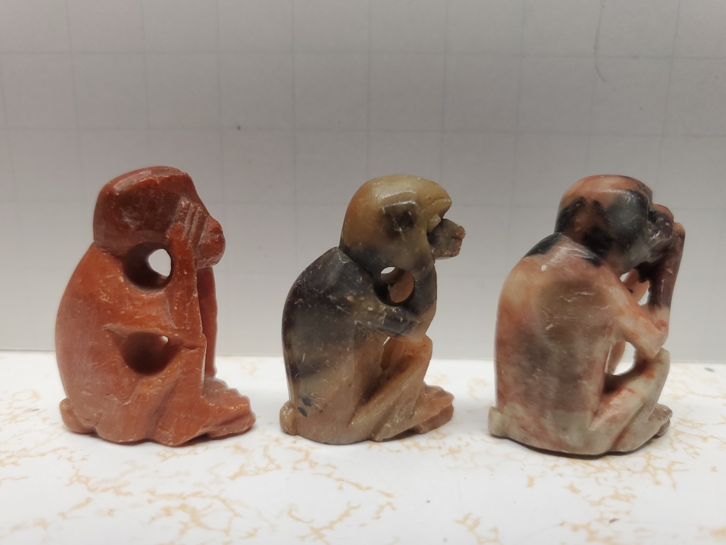 Vintage Set of 3 Carved Soapstone Monkeys See Hear Speak No Evil