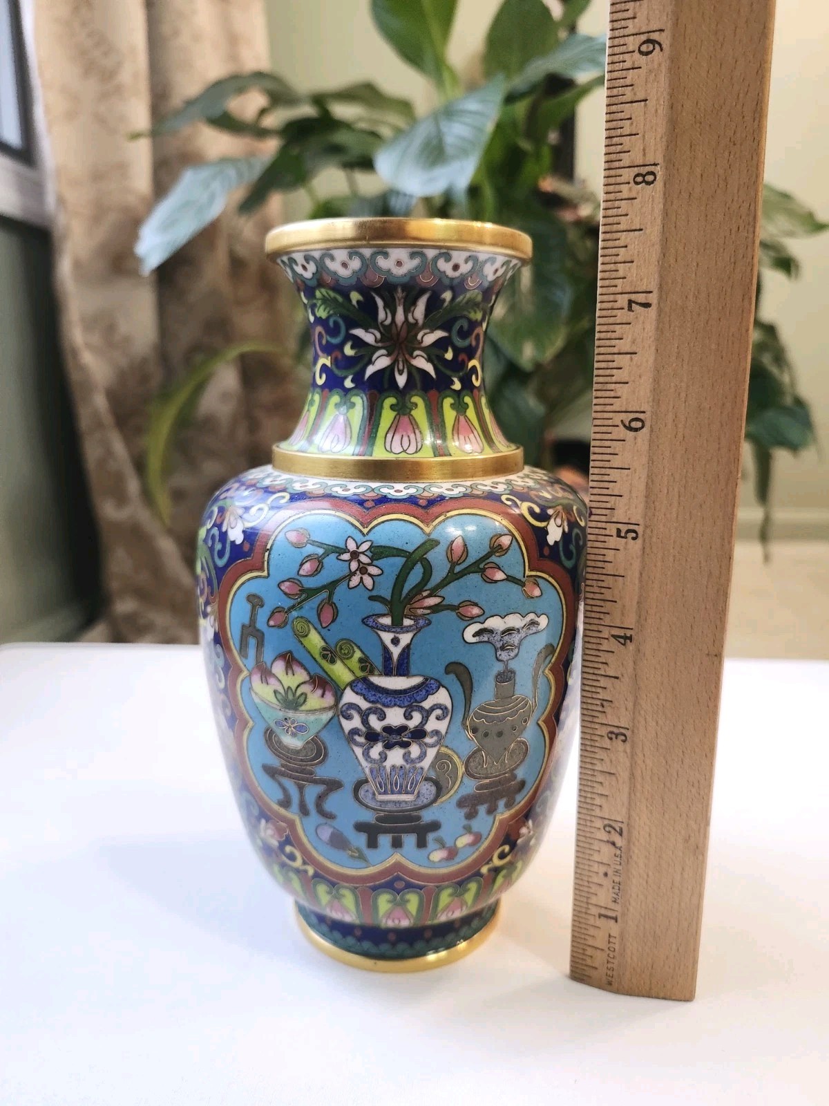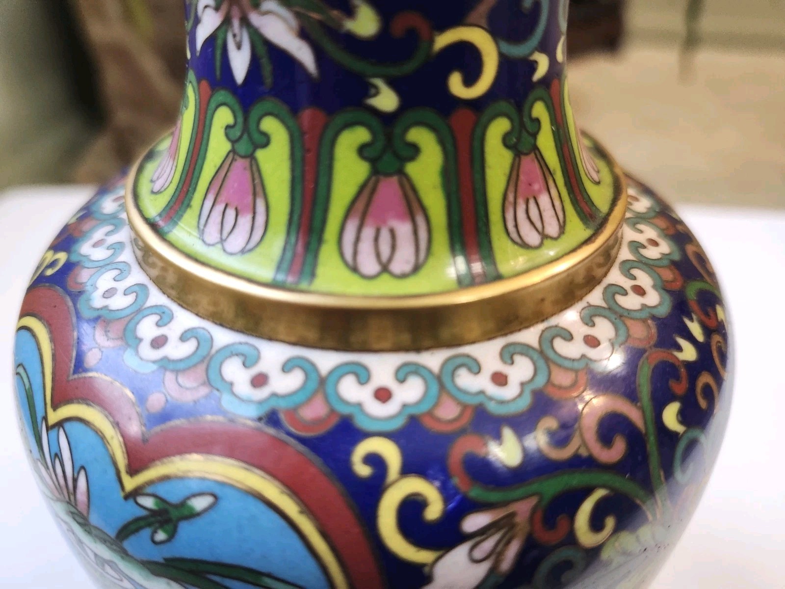 This used Chinese cloisonné enamel vase features a blue cloud pattern with floral detailing and measures about 7.5 inches tall. It is listed in the Collectibles category and is offered at USD 48.00. Please review the photos and the listing for details on age, maker, finish, and any signs of wear such as scratches, small dents, or enamel loss. Free Shipping is included, so you can estimate the total cost upfront. Check the listing for details.