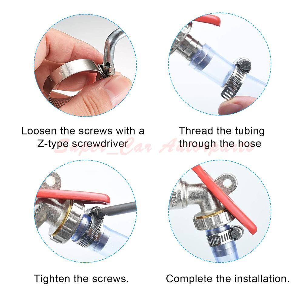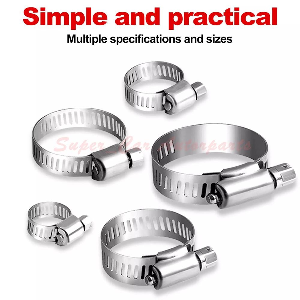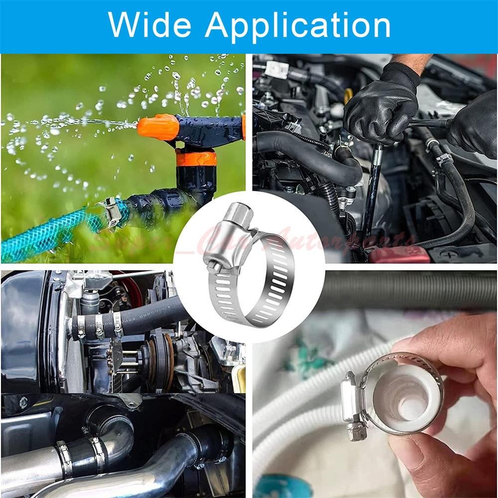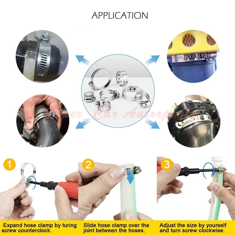 size range from 8 to 38mm. Fit most types of hoses and meet your different needs.Widely Used: Clamps are used in securing hoses, pipe, cable, tube, fuel lines, etc.Suitable For: automotive, industrial, boat/marine, shield, household, etc.Environmentally-Friendly: It can be reused and recycles, therefore, you don't need to spend extra money to buy more.Storage case: All packed in a plastic container for easy organization and storage.Specifications:Material: Stainless Steel Package Includes:8-12mm..........................30pcs10-16mm........................20pcs13-19mm........................20pcs16-25mm........................20pcs19-29mm........................20pcs22-32mm........................10pcs25-38mm........................10pcs1 x Storage BoxNotes:Please allow a slight dimension difference due to different manual measurements.Due to the light and screen setting difference, the item's