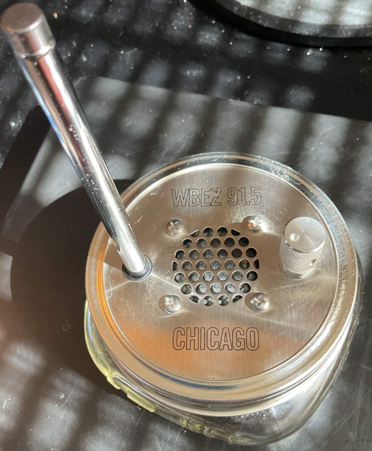 WBEZ 91.5 Chicago Single Station FM Channel Radio Housed In A Mason Jar