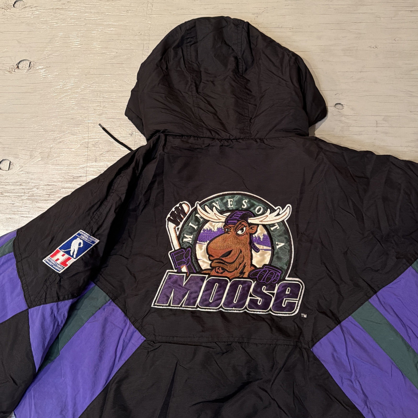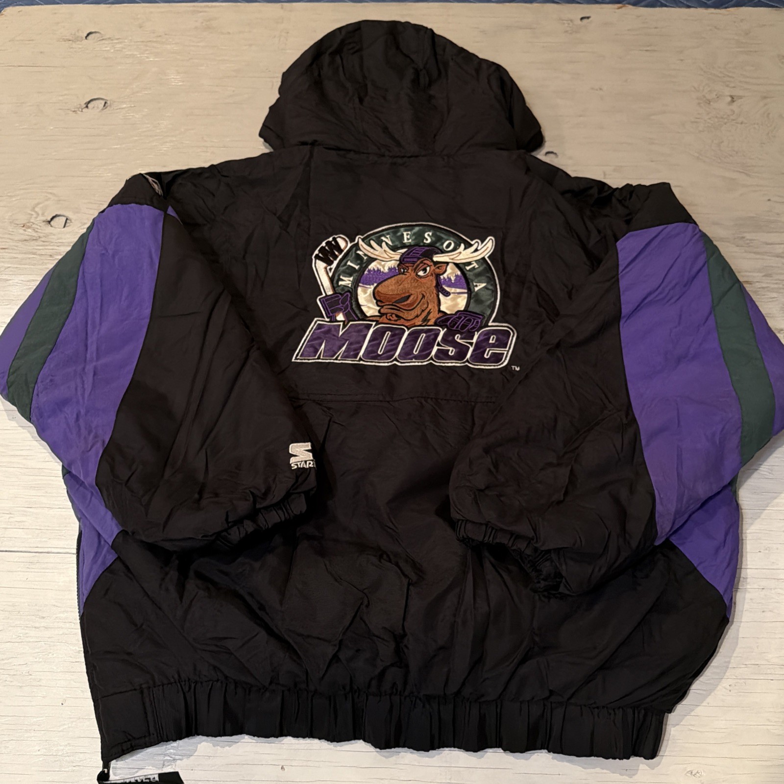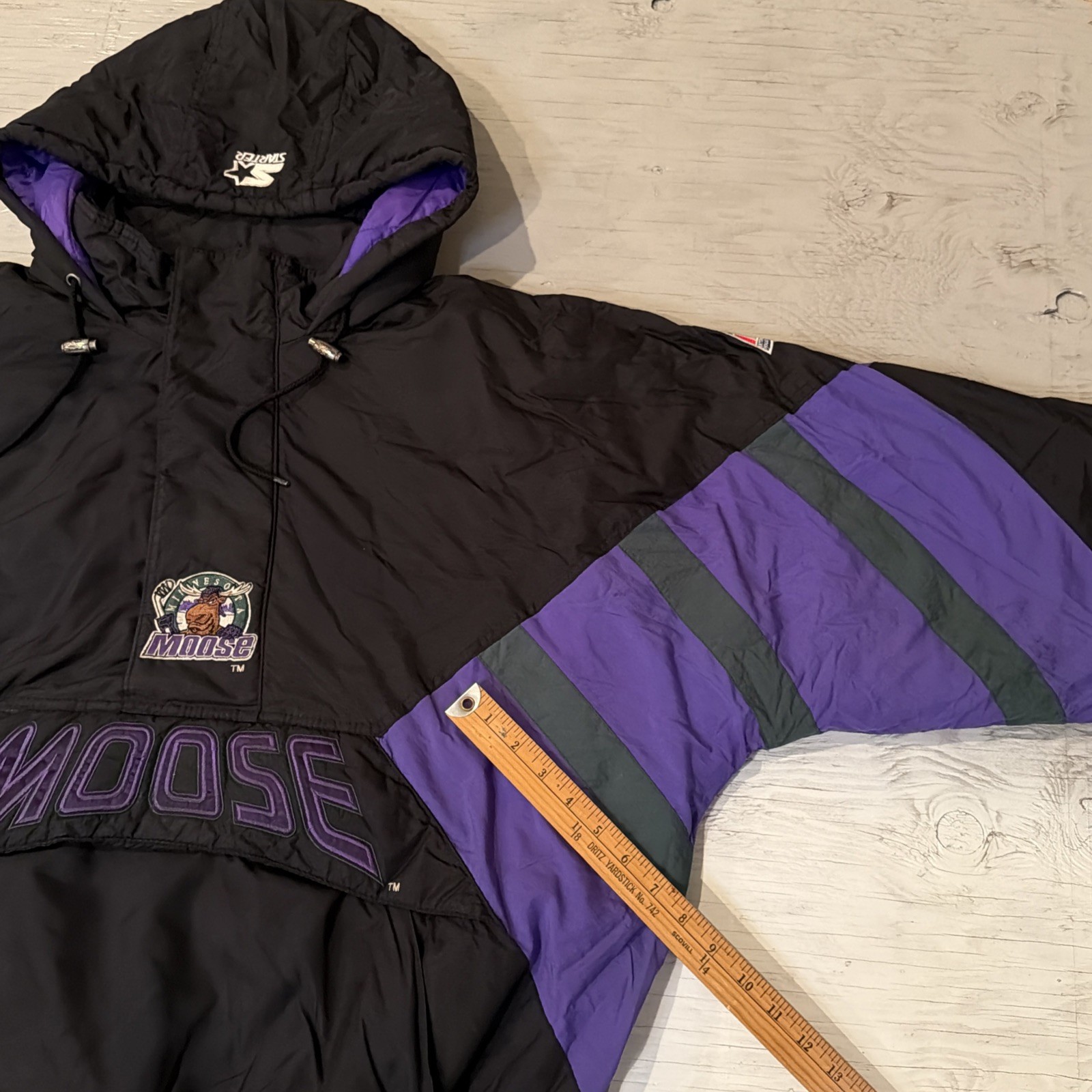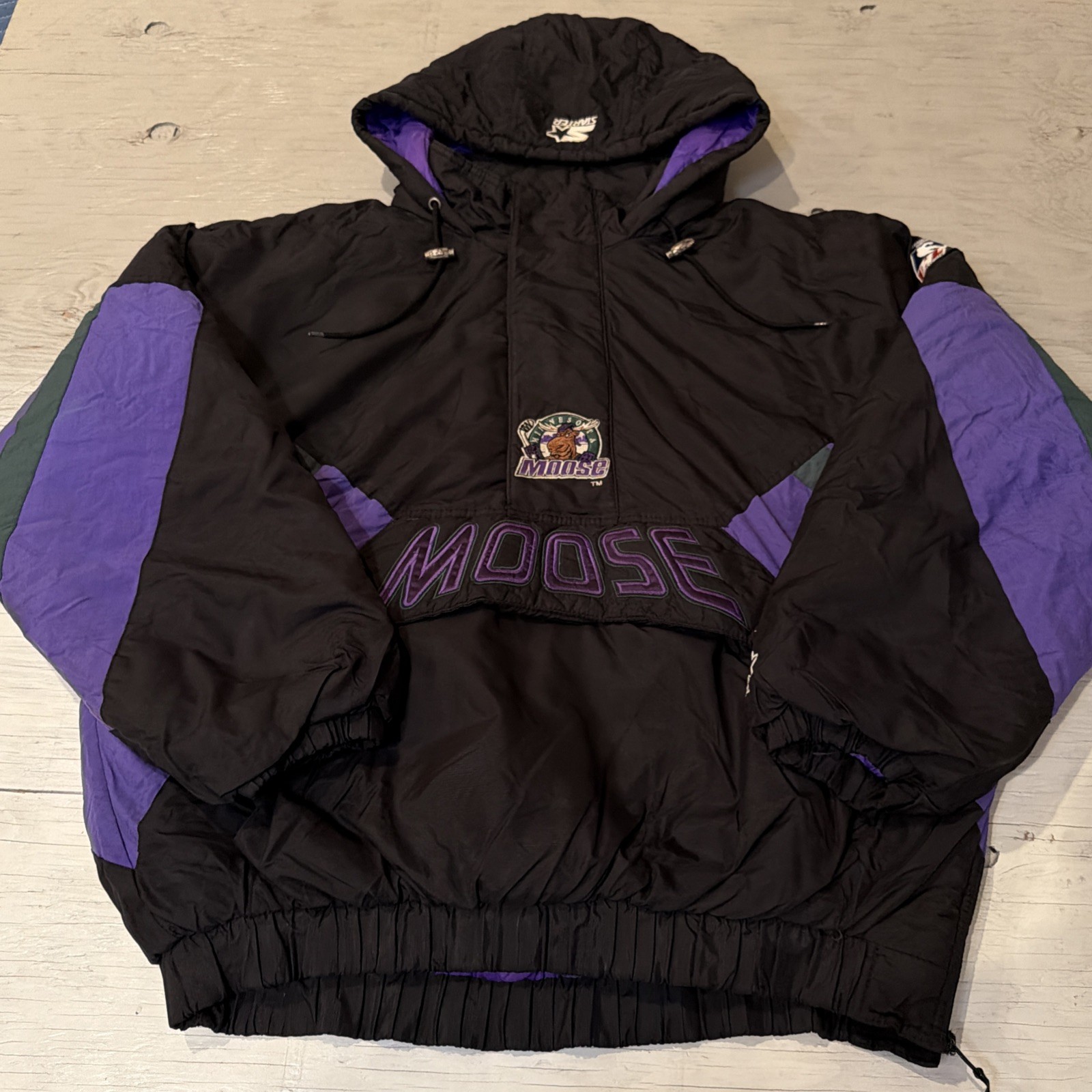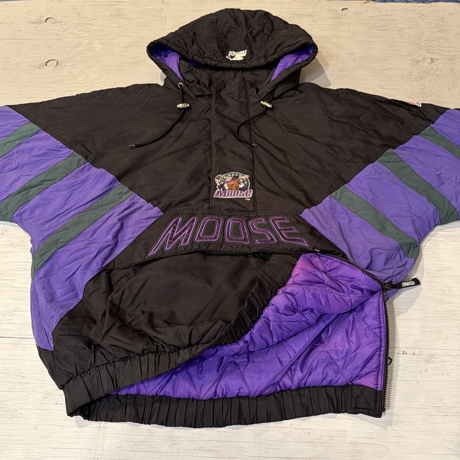 Vintage 90s Starter IHL Minnesota Moose Pullover 1/2 Zip Hockey Jacket Sz XL - Shipped USPS priority mail - Please check measurements for proper sizing- Please check photos for accurate description, marked distressed areas W/ yard stick in photo, check carefully