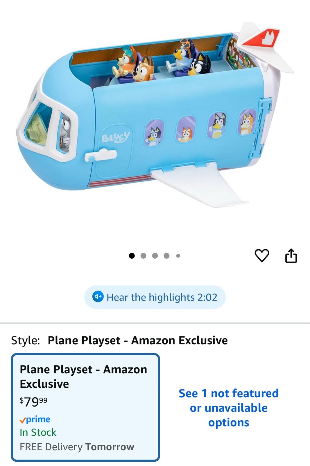 This Bluey 3-in-1 transforming airplane playset is offered in new condition. It’s designed for imaginative play and includes sound features and figures; check the listing for details on what’s included and how the sounds work. The item is priced at $65.00 USD and ships with free shipping. This is a Toys & Hobbies item suitable for Bluey fans and collectors looking for a boxed, unused playset. Check the listing for details on packaging, included pieces, and any manufacturer information.