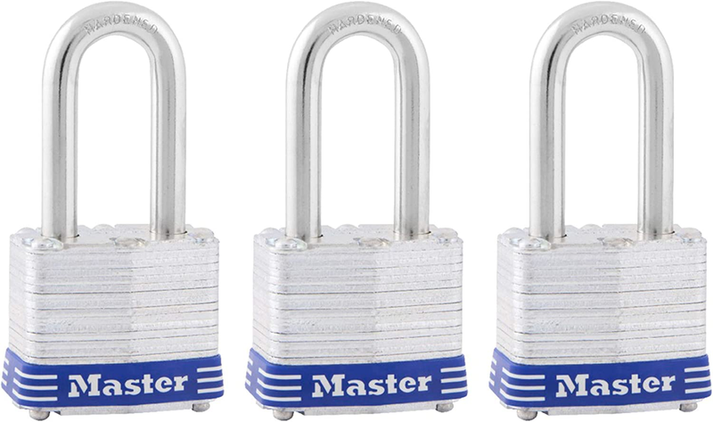 Indoor and outdoor lock; Padlock with key is best used for residential gates & fences, sheds, workshops & garages, tool boxes and more.Note: Measure your door's backset, cross bore and thickness to ensure you find the right fit.Key lock features a laminated steel body and a hardened steel shackle for strength and security4-Pin cylinder for added pick resistance and dual ball bearing locking for maximum pry resistance1-9/16 in. (40 mm) wide lock body; 9/32 in. (7 mm) diameter shackle with 1-1/2 in. (38 mm) length, 5/8 in. (16 mm) width; Extended shackle for application flexibilityIncludes three padlocks with two keys; Both keys open all locks Product Description The Master Lock 3TRILF Laminated Steel Padlocks with Key feature a 1-9/16 in. (40 mm) wide laminated steel body for maximum strength and reliability. The 9/32 in. (7 mm) diameter shackle is 1-1/2 in. (38 mm) long and made of hardened steel, offering extra resistance to cutting and sawing. The 4-pin cylinder prevents picking and the dual locking ball bearings provide resistance against prying and hammering. The Lifetime Guarantee provides peace of mind from a brand you know and can trust. From the Manufacturer Master Lock 1-9/16" (40mm) wide Laminated Steel Pin Tumbler Padlock.