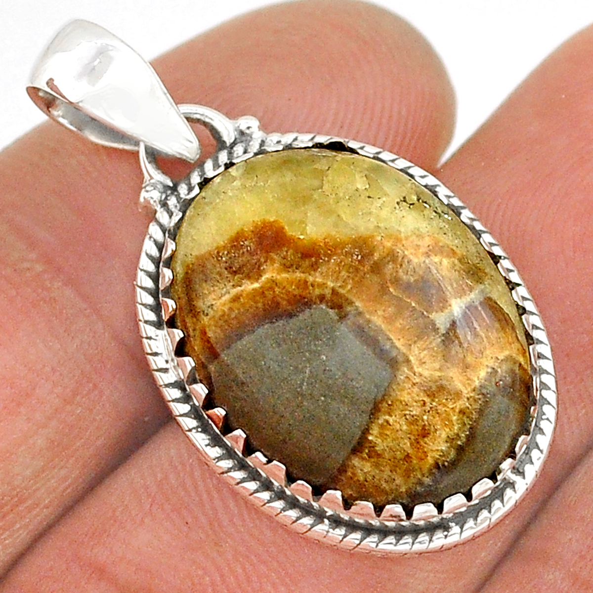 BEST OFFERSsilver 16.34cts Natural Brown Septarian Gonads Oval Pendant U87387