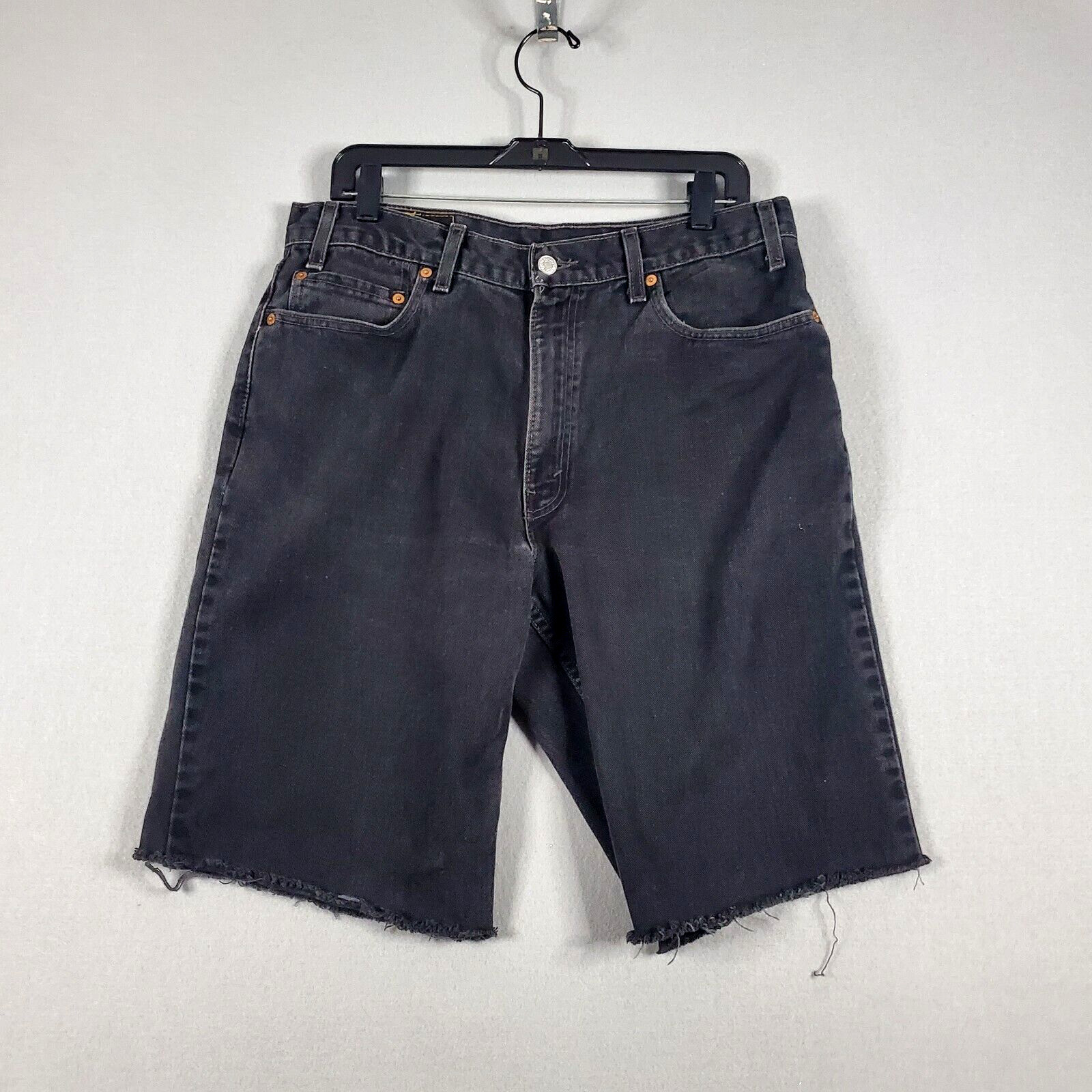 Levi's 550 Jean Shorts Men's 34 Black Dark Wash Relaxed Fit Cutoff Denim Jorts
