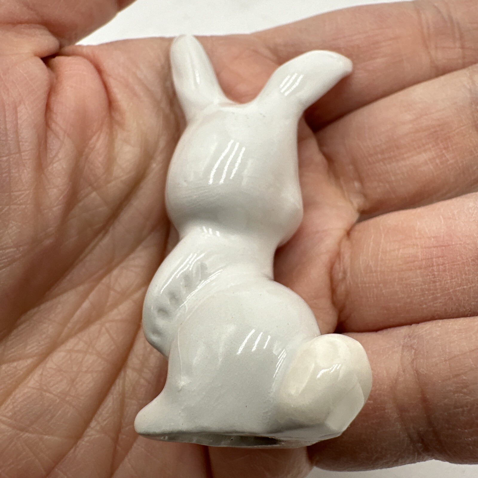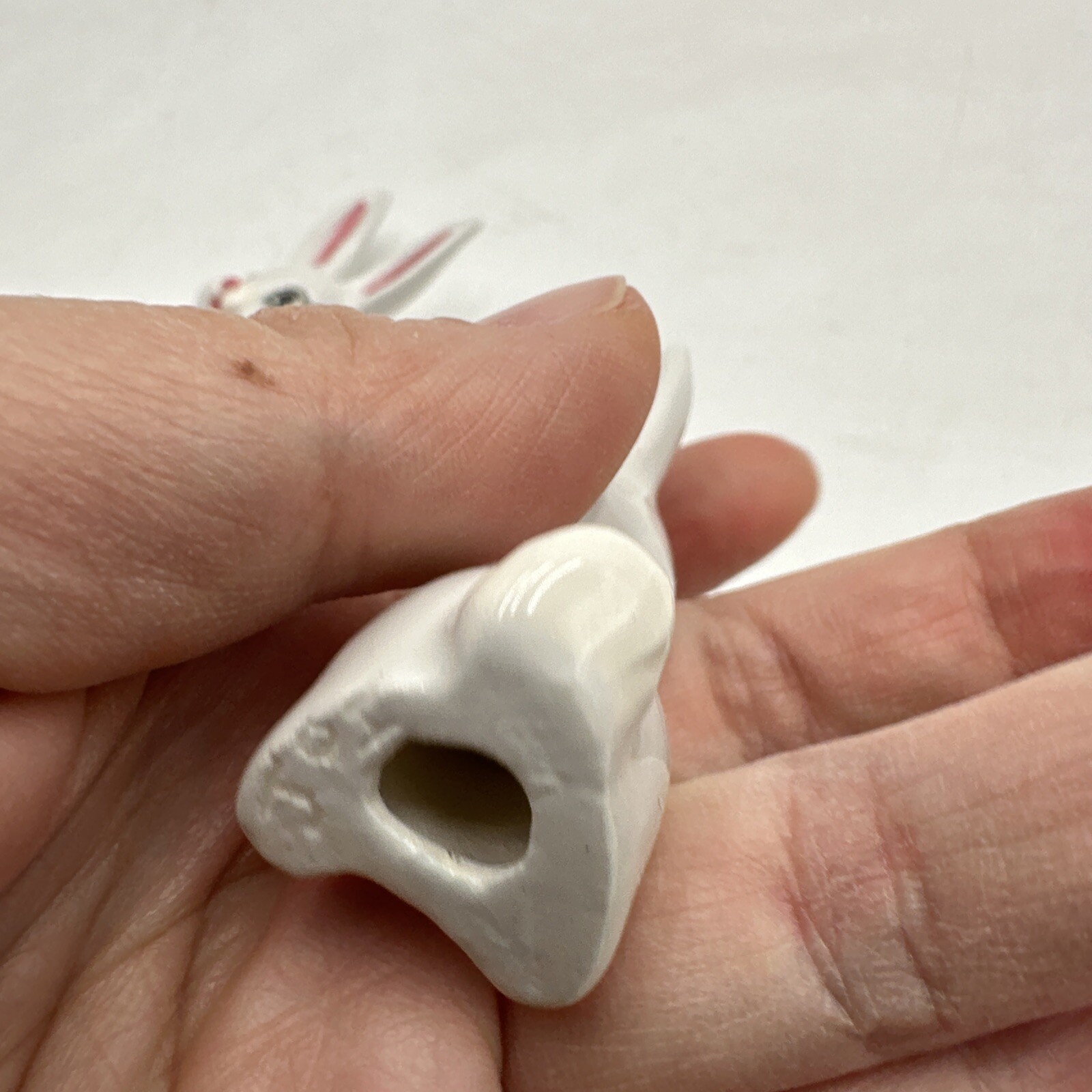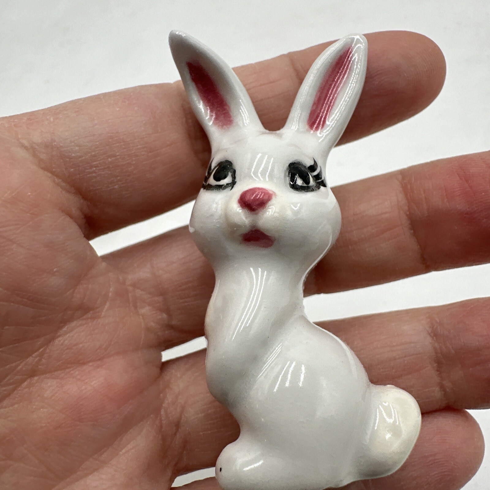 Vintage Miniature Bunny Rabbit Porcelain Family Figurines Pink Eyelashes Lot 3