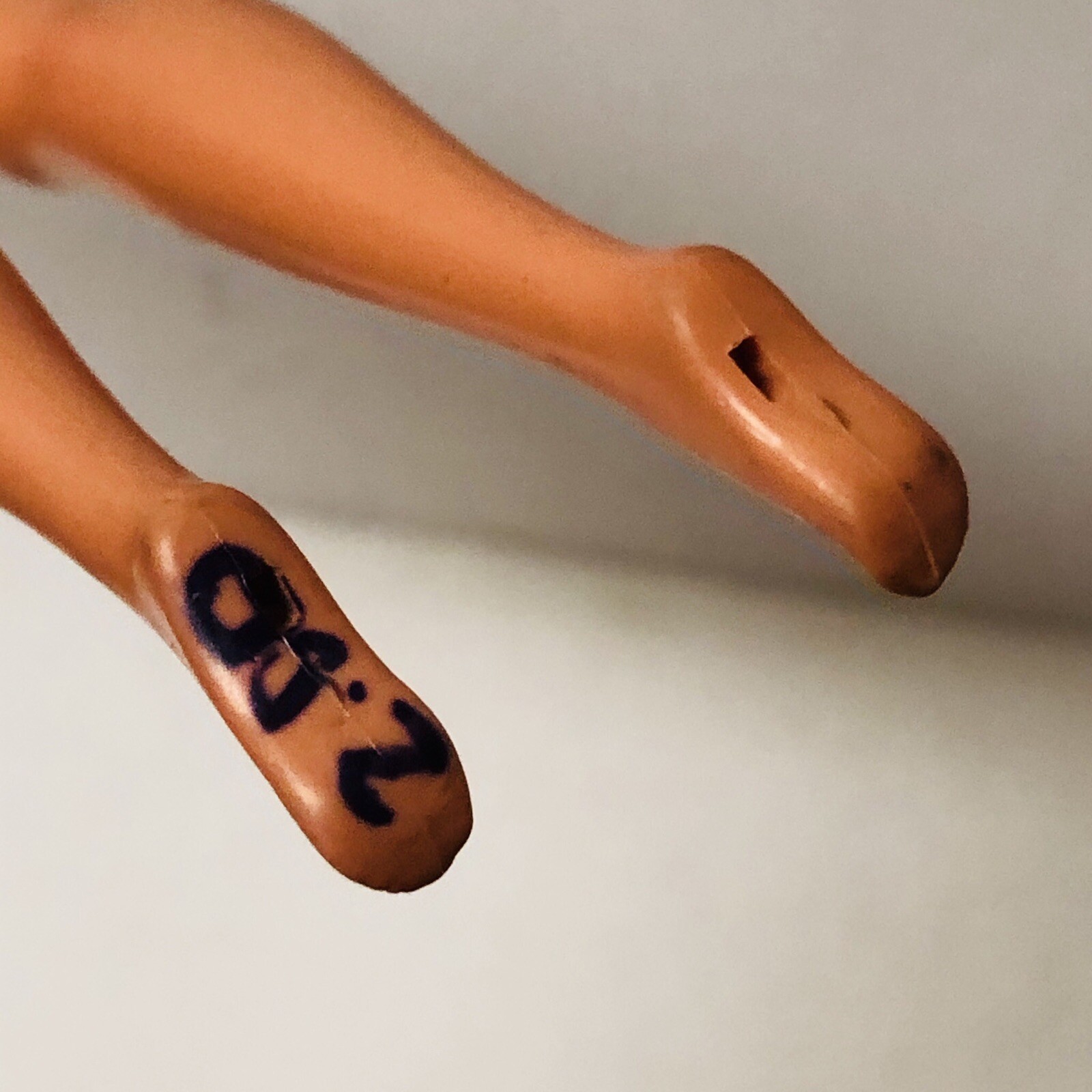 Barbie is in nice condition however someone wrote an old price in marker on bottom of foot. Includes original outfit as well as holes for earrings and ring. See pictures for more details. Thanks!Vintage 1966 Barbie Doll Malaysia Long Blonde Hair Twist Waist w/ Outfit.