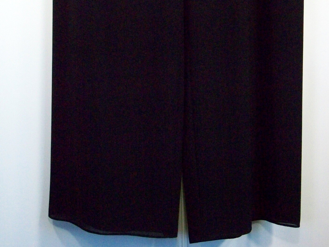 These Adrianna Papell straight leg lined pants in black, size 10, are new with tags. Please note they are selling AS IS due to manufacturing flaws: small melted poly specks/spots on the back of the sheer outer layer of the left leg (see photos). Check the listing for details on fabric, measurements, and care. Price shown is for the item only; free shipping is included. Review images closely to confirm condition before purchase.