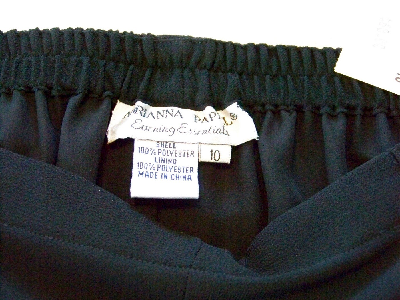 NWT ADRIANNA PAPELL Evening Essentials Sz 10 Black Straight Leg Lined Pants *AS IS* - see condition notes belowAdrianna Papell High Rise Lined Black PantsWomen's Size: 10Condition: has tag; however, selling *AS IS* due to manufacture flaws (small melted poly specks/spots) on the BACK of the sheer outer layer of the left leg (see photo). Originally $68, price adjusted. Straight Leg with Sheer OverlayColor: Black, Textured outer layerFeatures partial-elastic waistbandMaterial/Lining: 100% PolyesterApprox. Measurements: (laid flat):Rise: 13.75-inInseam: 30.5-inLength: 42.5-inWaist: 14-in (stretch to 15-in)Hip: 18.5-inThigh: 13-inKnee: 12.5-inBottom/Hem: 11.5-inPackaged carefully and mailed best way with tracking.Thank you,Avante Avenue