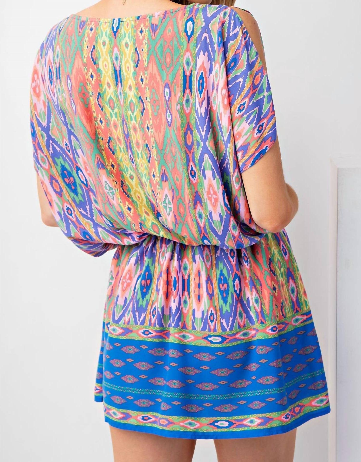 The kind of easy and flattering dress you'll be reaching for all season long.Boho chic essential in a striking geometric pattern. Designed for women, flaunts a cap sleeve and an A-line silhouette, finished with a boatneck for effortless charm. Crafted from lightweight rayon. Ideal for beach days, especially during spring. Pull on style. Hand wash only. Color: RoyalNo offers or bids: all items are already at max discount Final Sale No Returns or Exchanges!