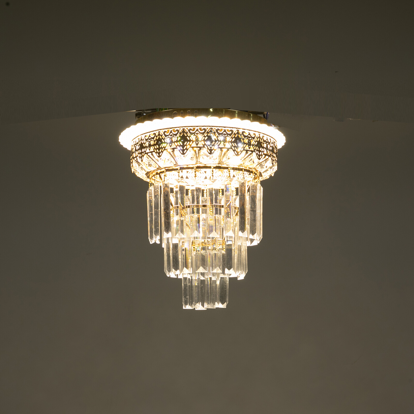 Brighten up the night with a ceiling light. The delicate golden frame, intertwined with the bright light of the glass, is like a beautiful painting that is mesmerizing. Its use of high-quality glass can reflect light to almost every corner, brightening the whole room. Even in a dark environment, it can bring you endless warmth and romance. Whether at home or in public, it can bring you a wonderful visual and lighting experience. ✨✨✨ Welcome to Xinxinbang ✨✨✨Key FeaturesSelected Materials: The product is made of high-quality iron and glass with the baking paint process, making it sturdy, anti-rust, and still beautiful and practical after long-term use. Unique Appearance: The unique glass lampshade, the elegant gold color, and the rich hierarchical structure give the product a unique modern style. Its charming and romantic style can be matched with most of the furniture, which is a great choice for creating a home atmosphere. Excellent Light Source: The environment-friendly and energy-saving LED light with a high