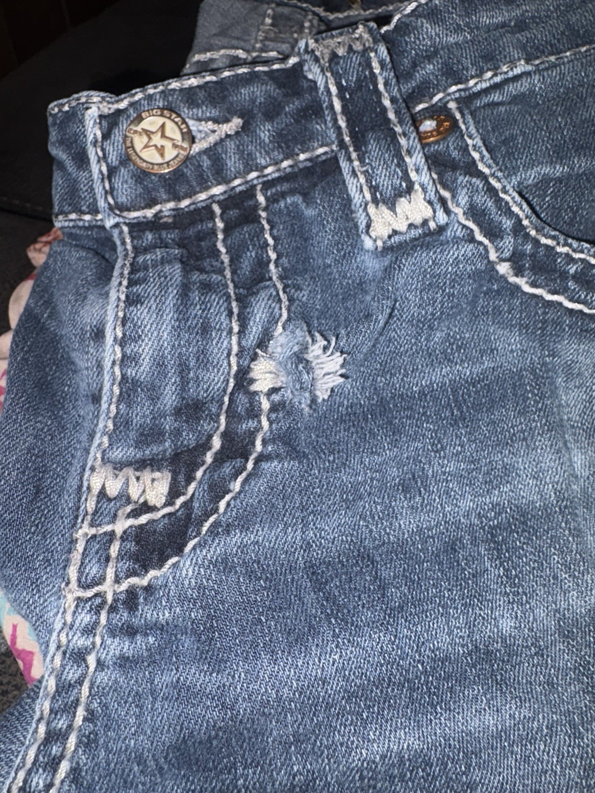 Big Star Jeans Adult 27R Maddie Boot Blue Denim Thick Stitch Mid Rise Women (1D) Specs