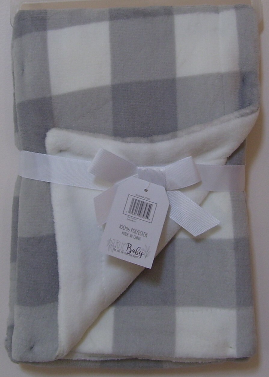 True Baby Gray White Plaid Soft, Cozy Throw Baby Blanket. Size is 30 X 40 Inches. New with tags. Makes a GREAT Gift!Smoke and Pet Free home. Winning bidder to pay within 3 days listing end. Check out my other listings for more great deals.RETURN POLICY DETAILSReturns are accepted with prior approval ONLY if item is misrepresented in the listing. You must contact me first before returning an item. I do not accept returns for buyer choosing the wrong size/item not fitting. There are NO returns/refunds on pageant and special occasion wear.