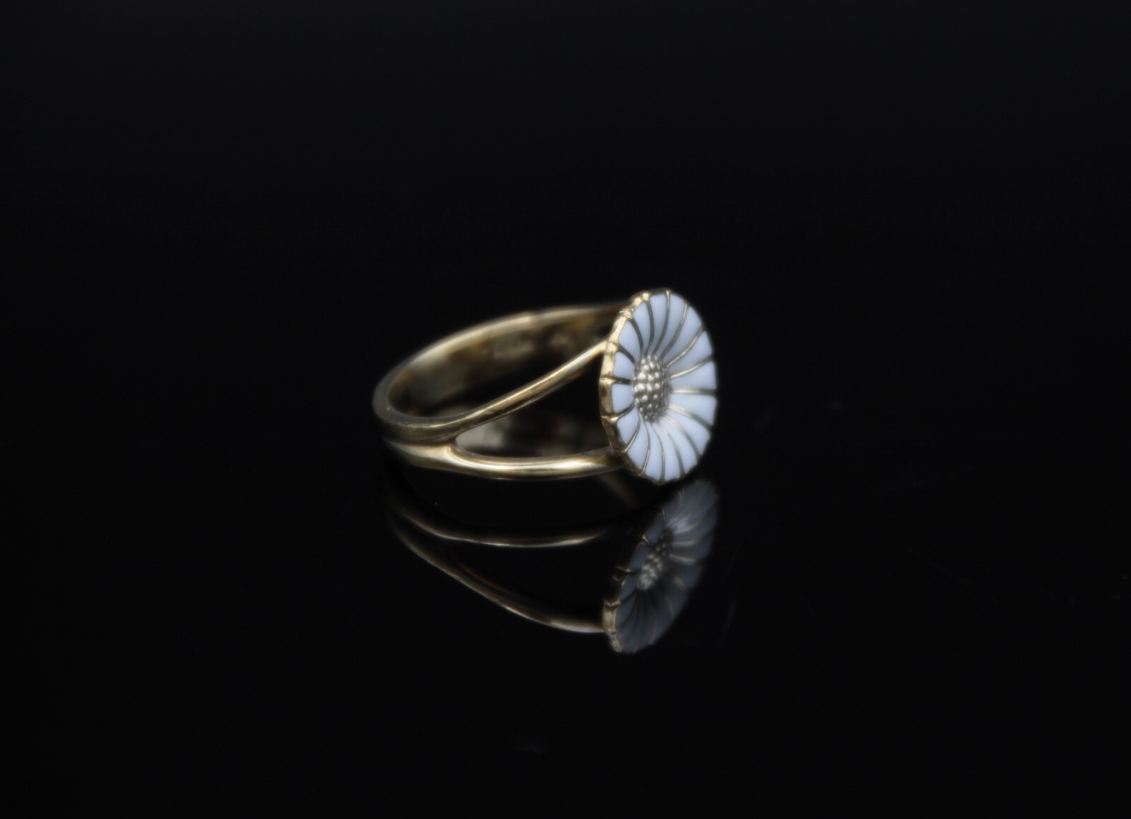 Georg Jensen Gold Plated White Daisy Sterling Silver Ring 11 mm | Size 5.5