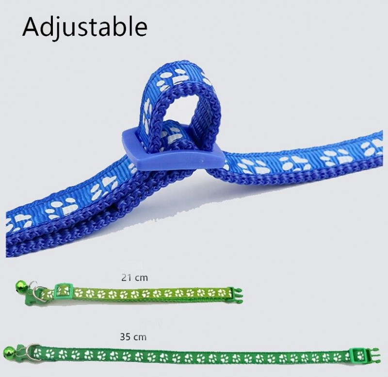 Make sure your cat/pups is seen and that much safer with the Purr-Fect nighttime accessory that looks great by day too!This paw print collar is suitable for cats and dogs. It is made with high-quality nylon material, and you will always know where your furry friend is with the attached bell. The safety buckle ensures that your pet will not be able to weasel their way out! Collar is adjustable from 8"-12" L (20.3 - 30.5 cm) and Width: 0.4" Hand-wash in cold water; air dry.(Available in Multiple Colors) ~~~FREE SHIPPING~~~