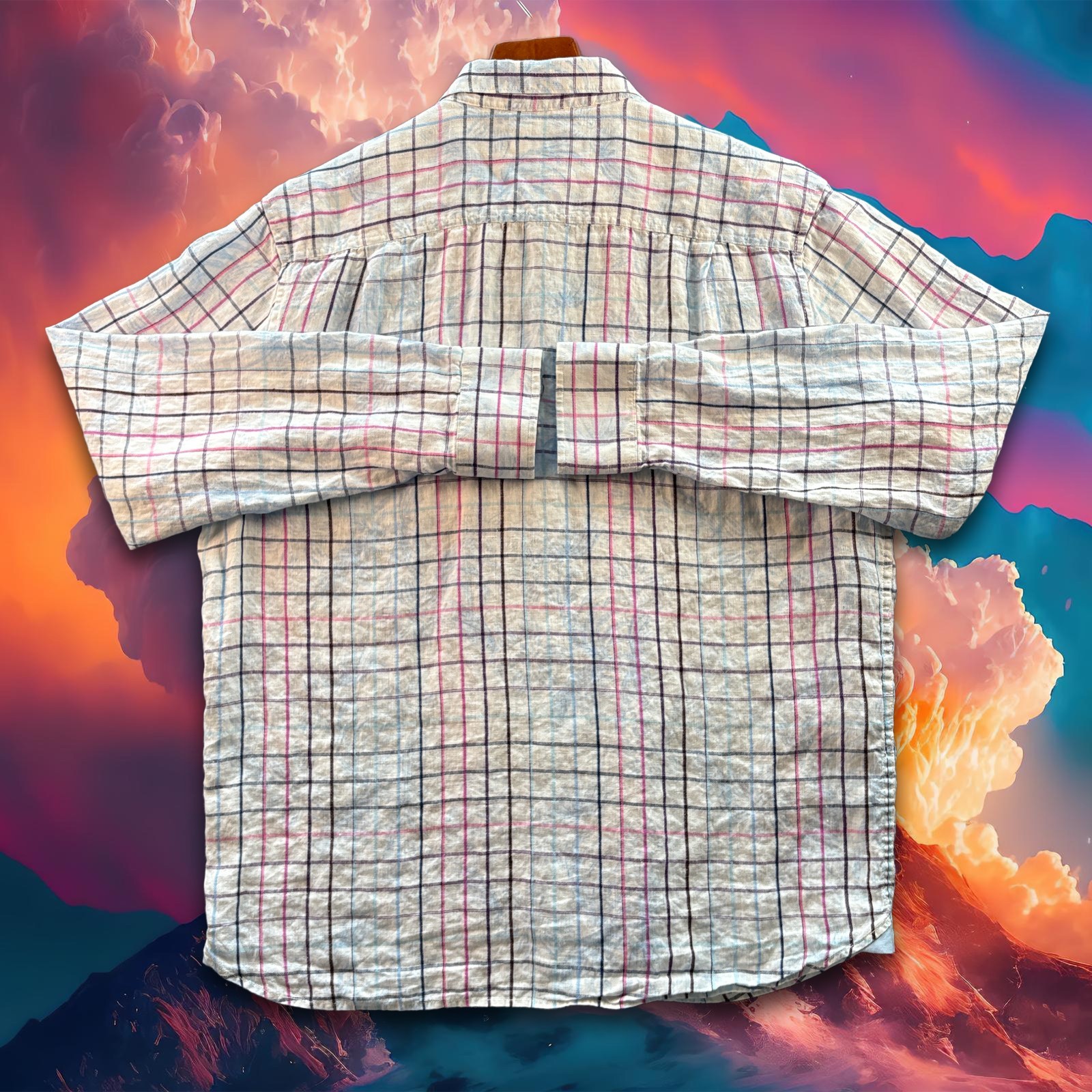 Tommy Bahama Bright Men's 100% Linen Multicolor Plaid Button Up Shirt Size Large