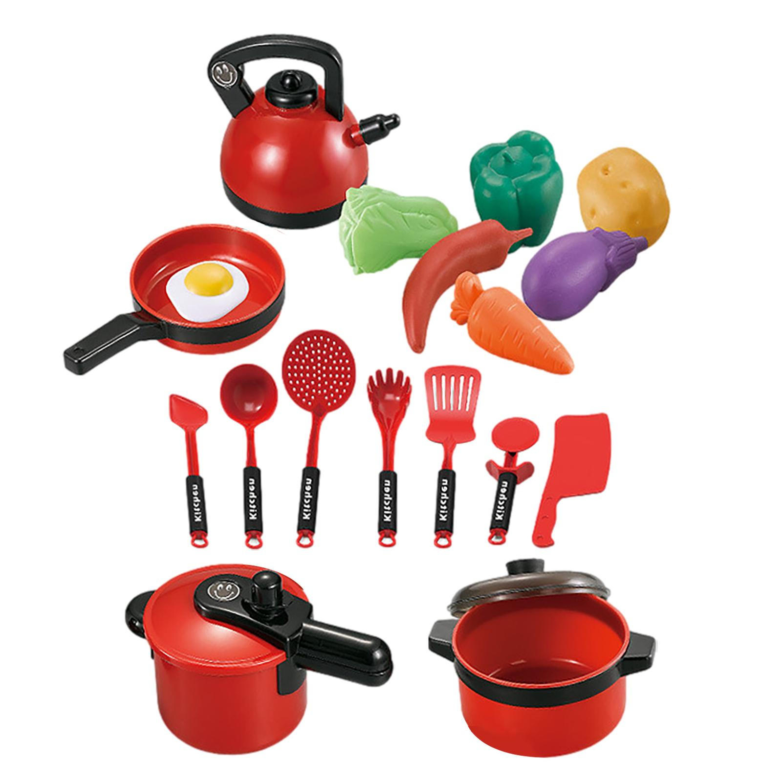 Material ] Kitchen Set For Kids is made of high-quality ABS material, durable for long-term use, safe, sturdy, and environmentally friendly. [ Exquisite Craftsmanship ] Treated with superb craftsmanship, Kitchen Accessories For Kids are crafted with smooth appearances and round edges, with bright colors, not easy to fade. [ Capacity Cultivation ] Stimulate children's interest in cooking, Toy Kitchen Sets cultivate children's hands-on ability, and help them recognize kitchen utensils and vegetables. [ Entertaining Toys ] Kids Kitchen Accessories Set contains various cooking utensils and vegetables, provides hours of the cooking game fun, suitable for kids' small hands to grasp. [ Good Presents for Children ] Wonderful birthday or Christmas gifts for kids, Kitchen Playset Accessories help develop children's creativity and thinking skills, and easily attract kids' attention. Description:1. Safe, sturdy, and durable.2. Helps cultivate children's thinking, creativity, and hands-on ability.3. Great as a birthday, Christmas or Children's Day gift.Specification:Name: Children's Kitchen Utensils ToysProduct material: ABSProduct packaging: