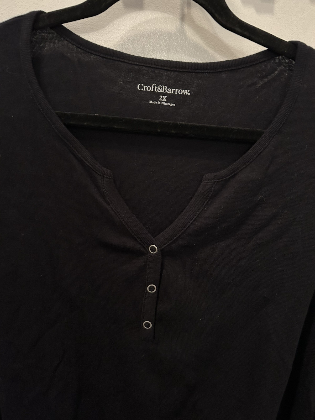 NWT CROFT & BARROW HENLEY TEE SHIRT ladies size 2X black 3/4 sleeve 100% cotton Specs