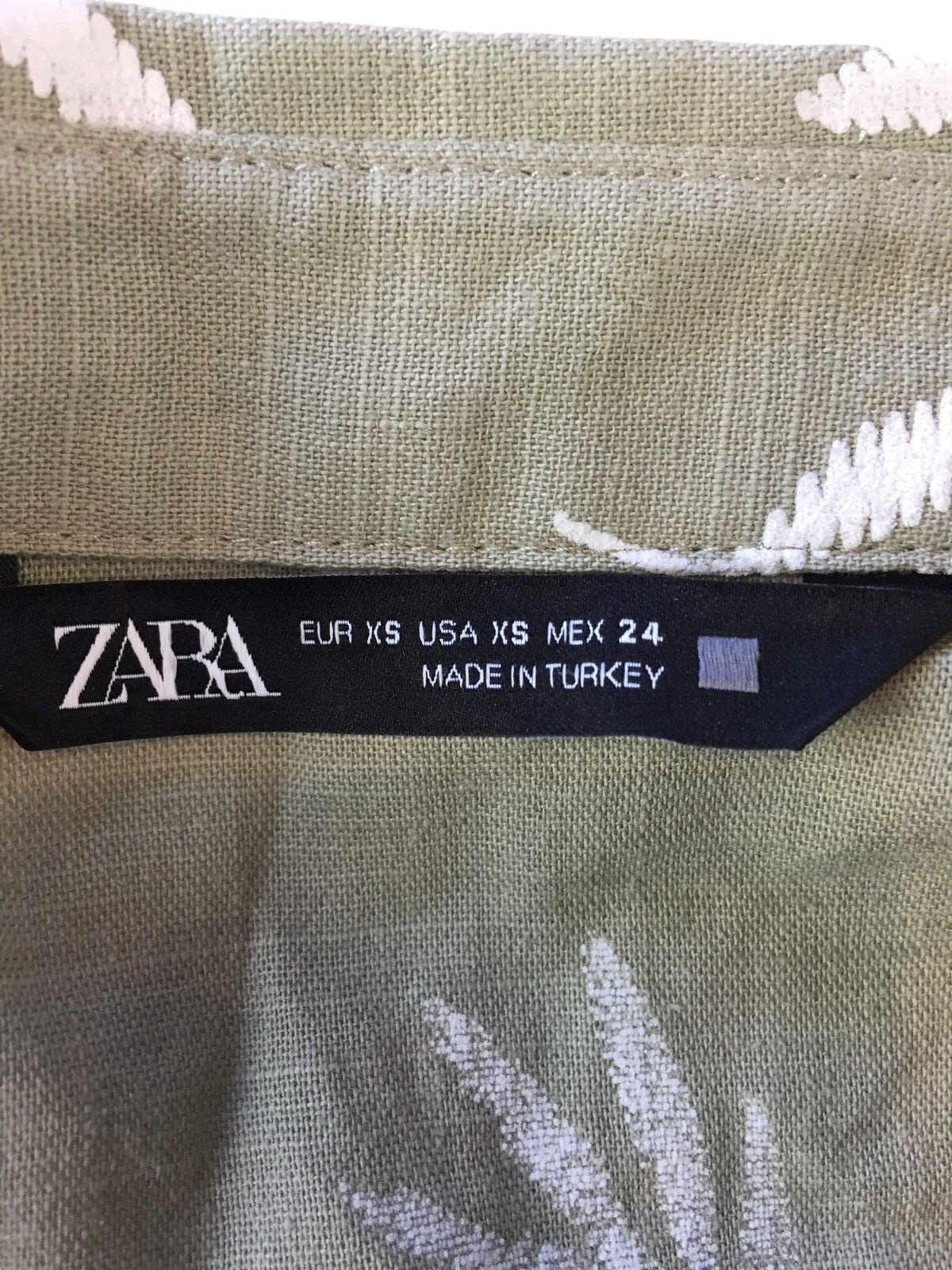 Zara Womens Shirt Dress XS Green Embroidered Short Sleeve Braided Belt Button Upnew without tags rubberized embroidery Material: Cotton, LinenClosure ButtonCasual SleeveMini LengthEmbroidered detailsElastic WaistBraided beltMeasurementsPit to Pit 16"Length 30"