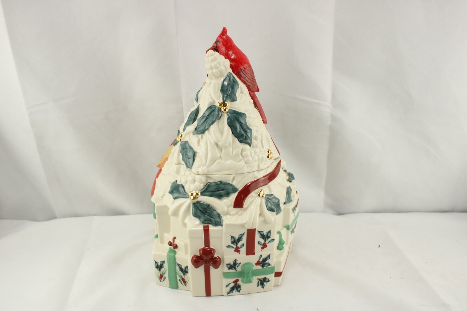 Lenox Winter Greetings Cardinal Cookie Jar 12" Male Female Cardinal Specs