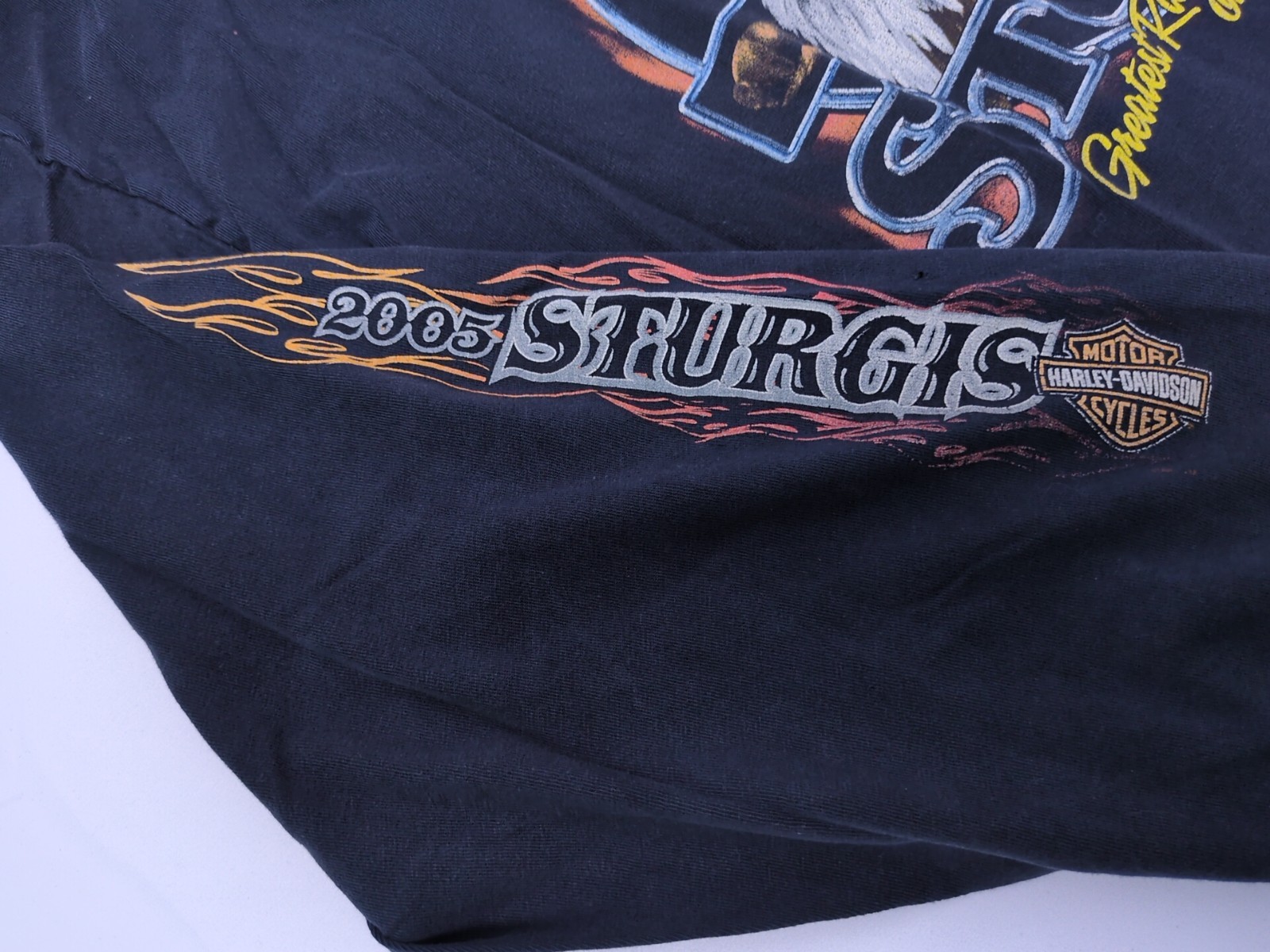 VTG 2005 Harley Davidson Sturgis T-Shirt Black Hills Rally Anniversary Thrashed Specs