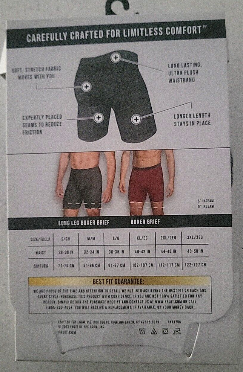 3 CRAFTED COMFORT LONG LEG BOXER BRIEFS3 pack Boxer Briefs Crafted for Superior FitSoft, Stretch fabric with a Soft Plush Waistband that moves with youLonger Leg Length with a 9" inseamTwice-stitched flex seams for durabilityFunctional Fly Support Pouch and Friction Guard Gusset57% Ring Spun Cotton, 38% Polyester, 5% Spandex JerseyBRAND NEW ~ MEN'S SIZE 2XL (44-46) ROBSTOYGARAGEPAYMENT: Payment must be received within 2 days of purchase.SHIPPING: We are always working hard to ensure your package arrives as soon as possible. Please understand that some factors like weather, high postal traffic, and the performance of shipping companies are outside of our control.We offer free shipping to the lower 48 states and ship within 1-2 business days of payment.For shipping outside of the continental USA, we only use eBay's Global Shipping Program.The item is shipped to eBay Hub and then sent to the rest of the world. International customers are responsible for all duties and taxes. Continue to check out in order to calculate costs for shipping the item to your country. Messages regarding eBay's Global Shipping Program MUST be directed at eBay EXCLUSIVELY.AVAILABILITY: All items were in stock at the time of the original listing. FEEDBACK: I Will leave feedback for you, Once it's left for Me!GUARANTEE: If I Misrepresent Item Listed, I will refund ALL Your money!!Please know what you are buying. If you have any question, Just Ask.THANK YOU FOR VISITING ROBS TOY GARAGE TODAY - CHECK OUT MY FACEBOOK PAGE.WE HOPE TO SEE YOU AGAIN SOON.