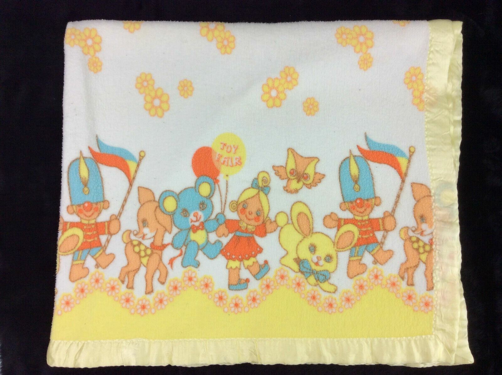Vintage Comfort Crib Baby Blanket Yellow Joy Fair Bunny Bear Parade 100% Cotton