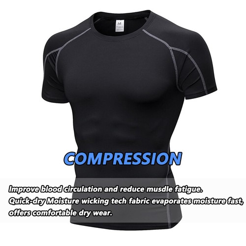 Men's Compression T-Shirt Sport Tight Base Layer Tops Short Sleeve Athletic Dry Specs