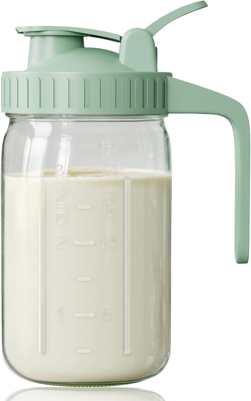 Breast Milk Pitcher, Mason Jar 32 Oz, Heavy Duty Wide Mouth Jar with Green Flip