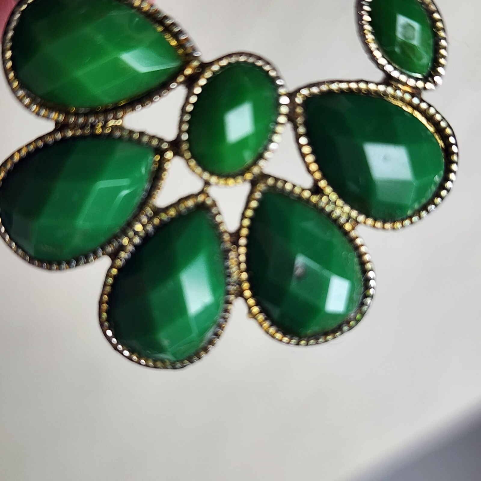 Vintage faceted green floret petals encased bezel setting dangle pierced earings