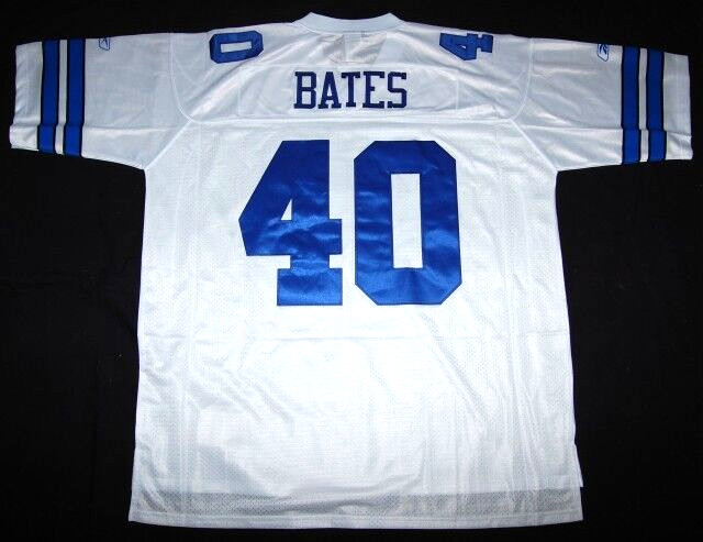 Brand New with Tags, Dallas Cowboys Bill Bates NFL Cowboys Legends Vintage JerseyThis 100% Authentic Premier sewn jersey features Bates' on the front, back and on both shoulders along with Reebok logos on the sleeves and BATES on the back. All NUMBERS, NAME, NAMEPLATE and TAGS are 100% Sewn and will not fade or peel! This is an Officially Licensed NFL Equipment Dallas Cowboys Authentic Apparel Jersey made by REEBOK.Size: Medium100% PolyesterRib-Knit V-Neck CollarEmbroidered NFL Equipment Logo at the neckSide Slits at the hemSewn NFL Cowboys Legends Tag on bottom left hemOfficially Licensed NFL/Dallas Cowboys ProductThanks for checking us out! For More 100% Authentic Licensed Fan Gear Visit Our StoreShipping:Free ShippingPayment Terms:PayPal is our preferred method of payment. Returns:We have a 30 day return policyReturns will be accepted for up to 30 days after receiving the item. Buyer is responsible for return shipping. All refunds are given as Money Back and will be issued once the item is received.