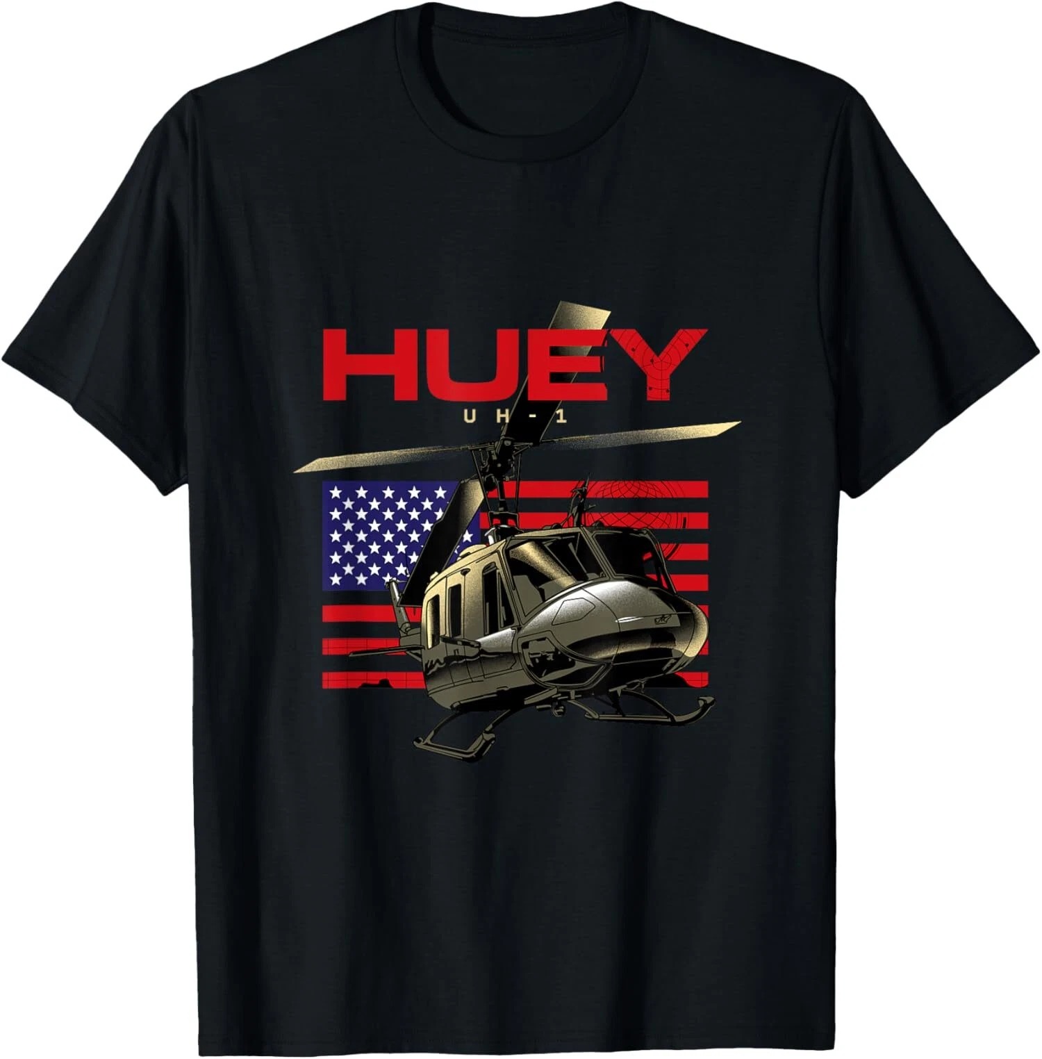 Huey UH-1 Military Helicopter Airplane T-Shirt If you need any SIZES, DESIGNS, COLORS, please inbox usProduct SpecificationDesign & Printed in the USA.Double-needle neck, sleeves and hem; Roomy Unisex FitSolid colors are 100% cotton; Heather colors are 50% cotton, 50% polyester (Sport Grey is 90% cotton, 10% polyester); Antique colors are 60% cotton, 40% polyesterDecoration type: Digital PrintMade by GildanShipping, Return and Refund PolicyOn average, merchandise is produced and shipped from our facility 2-4 business days after purchase. Standard Shipping: 5-7 working days for USA.Please contact us if you have any dissatisfaction with the item you buy so that we give you the solution. It is easier for us to handle your issue if you send us the proof like an image.We can replace another within 30 days without fee if the item is defective, damaged, or an error is made on our end.