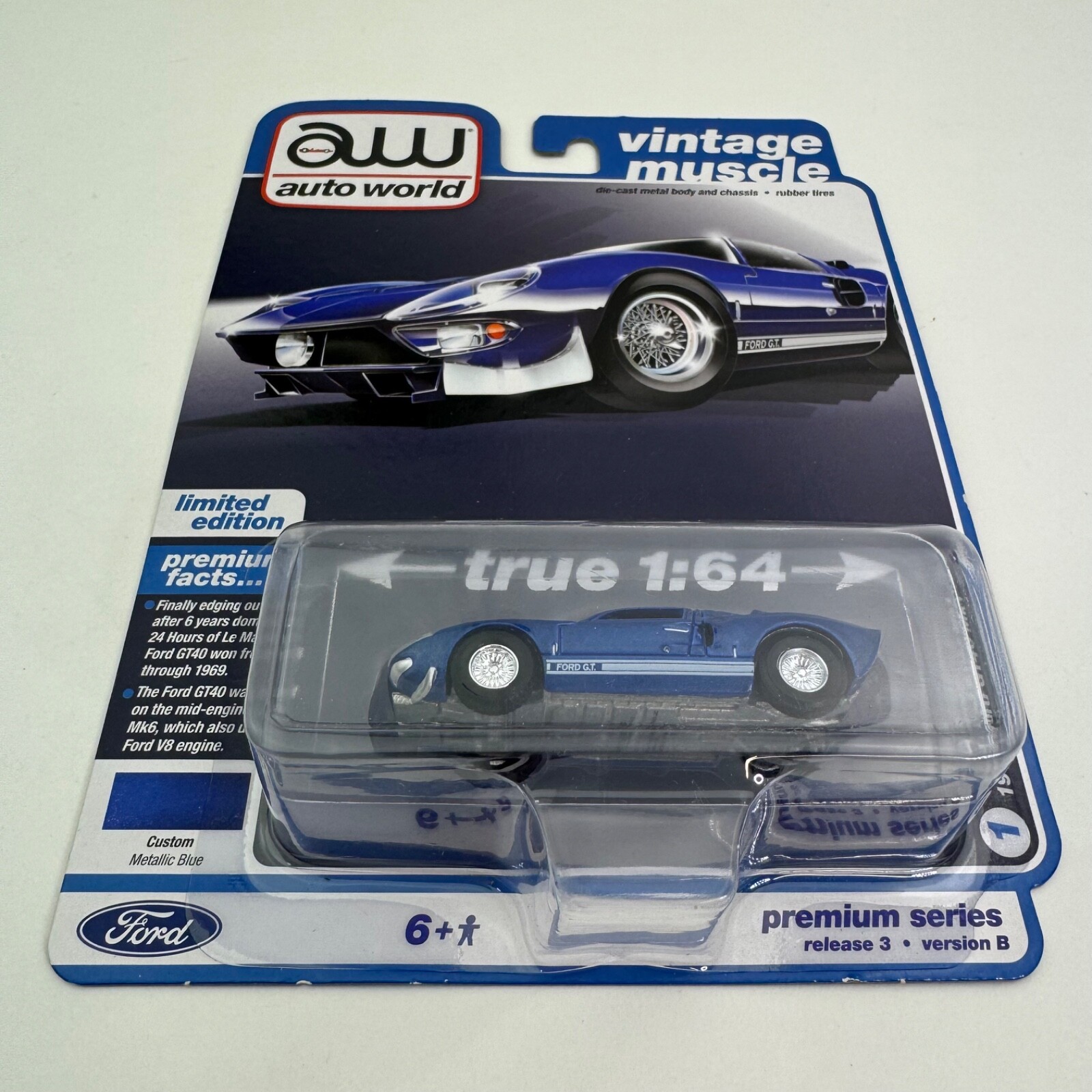 AW Auto World Vintage Muscle 1965 Ford GT40 MK1 Metallic Blue 1:64