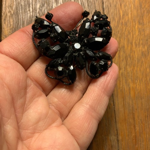 VINTAGE SIGNED REGENCY BLACK STONES BROOCH PIN, Signed REGENCY Specs
