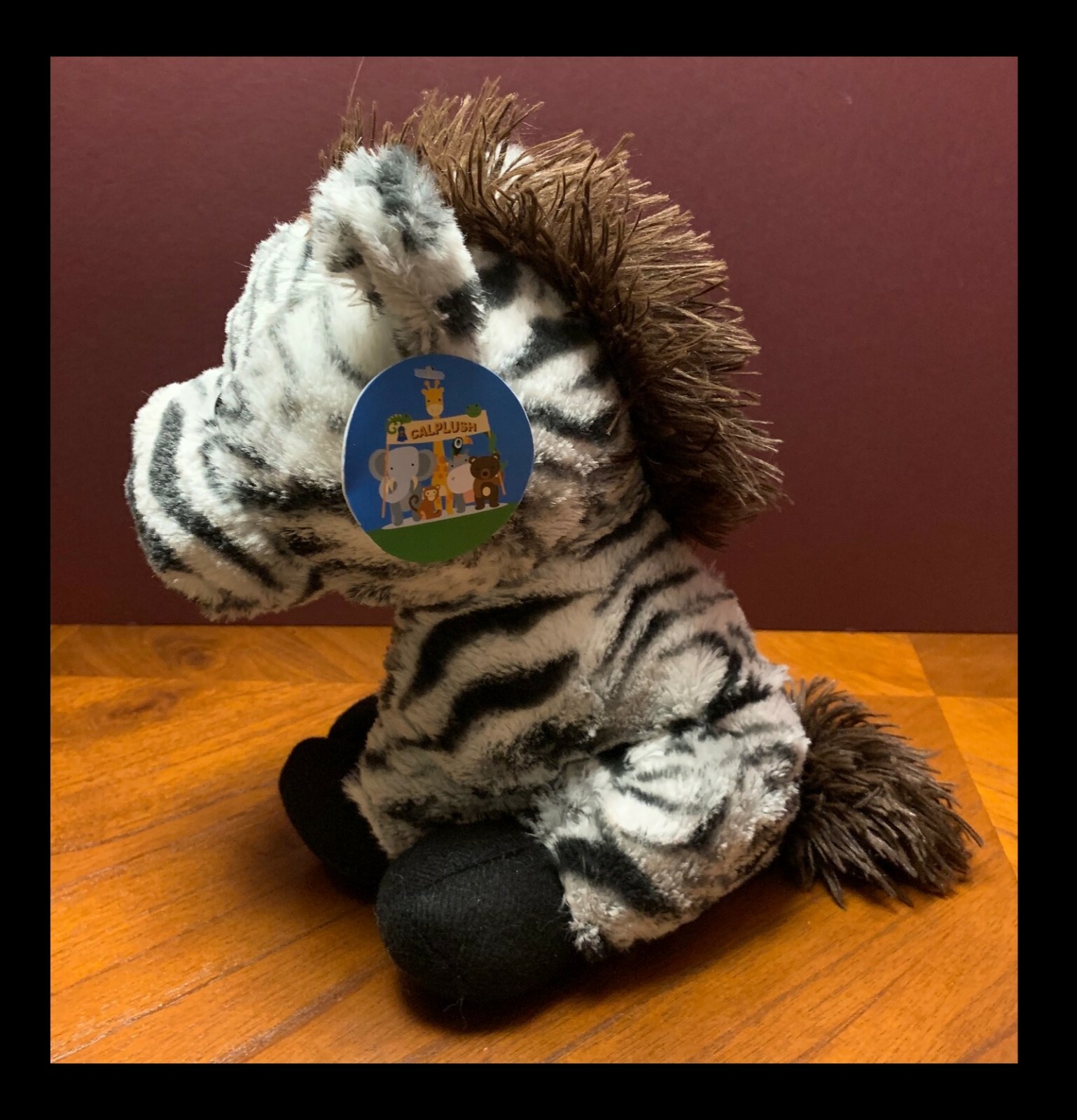 2019 HUAIAN CALPLUSH BLACK AND WHITE ZEBRA WITH BROWN MANE PLUSH STUFFED ANIMAL